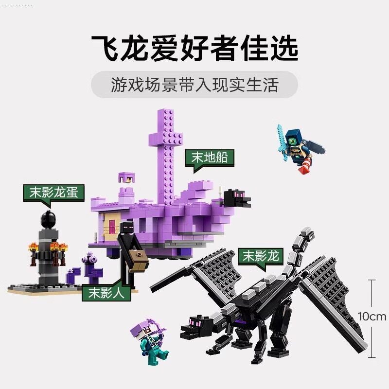 中国积木我的世界末影龙与末地船21264儿童益智拼装玩具男孩礼物