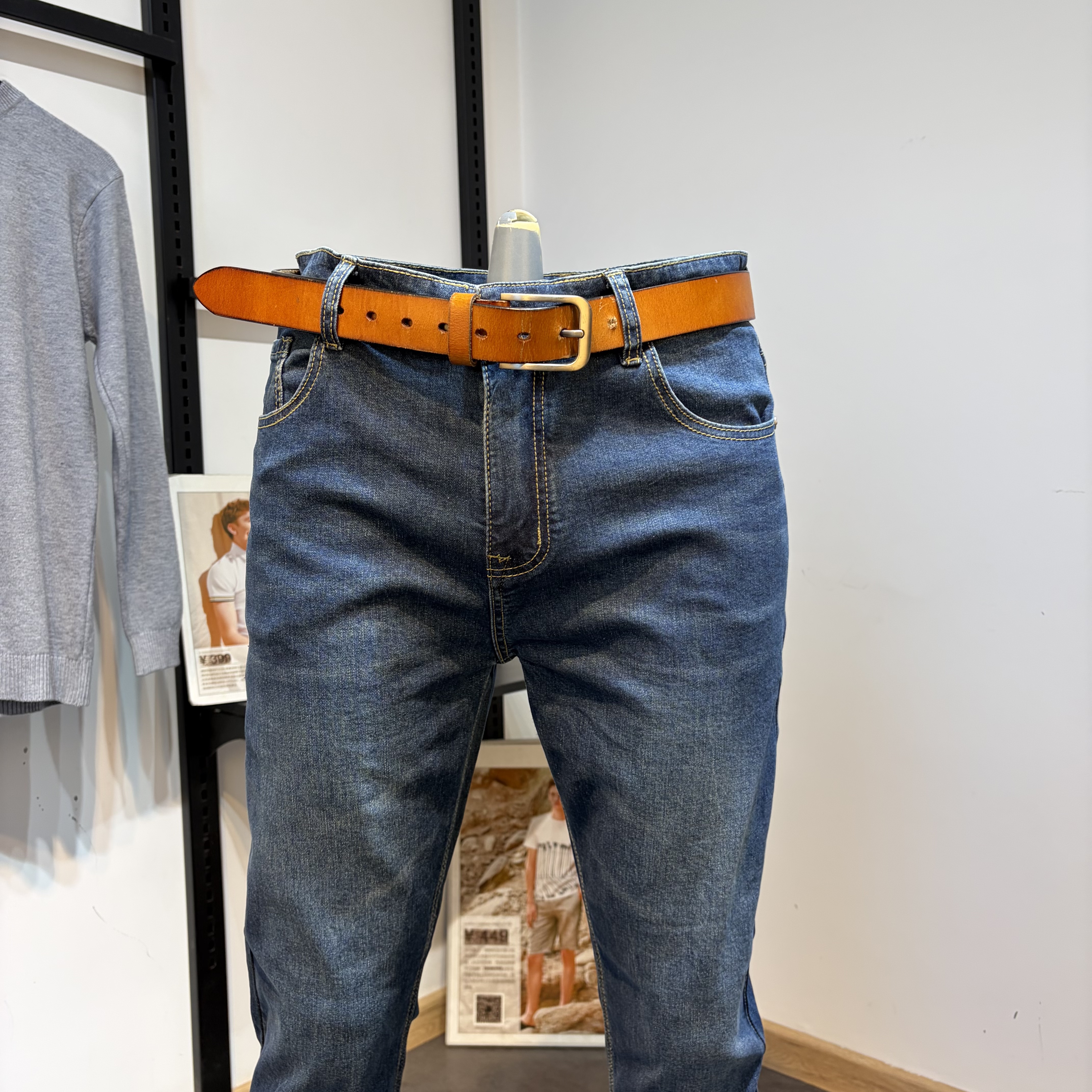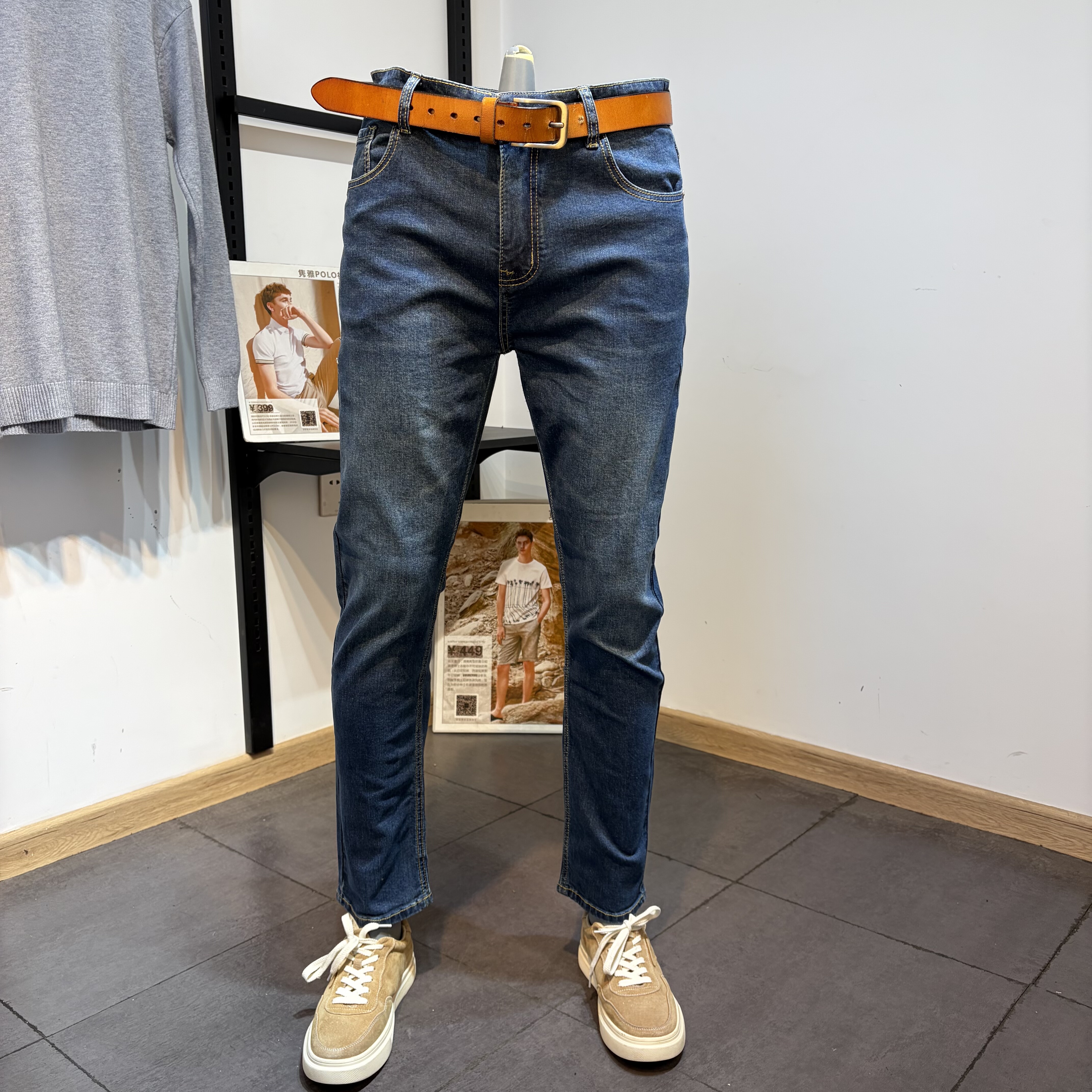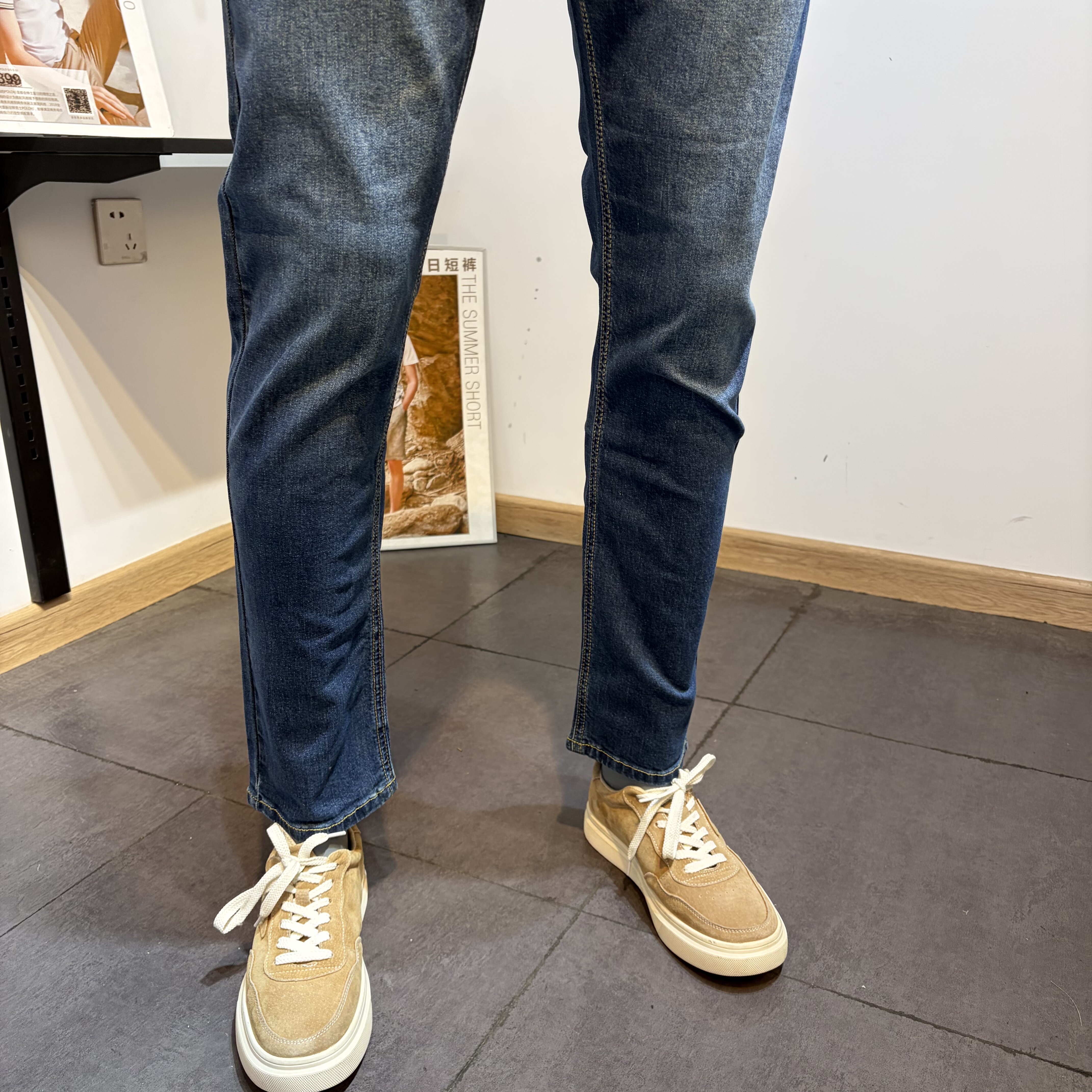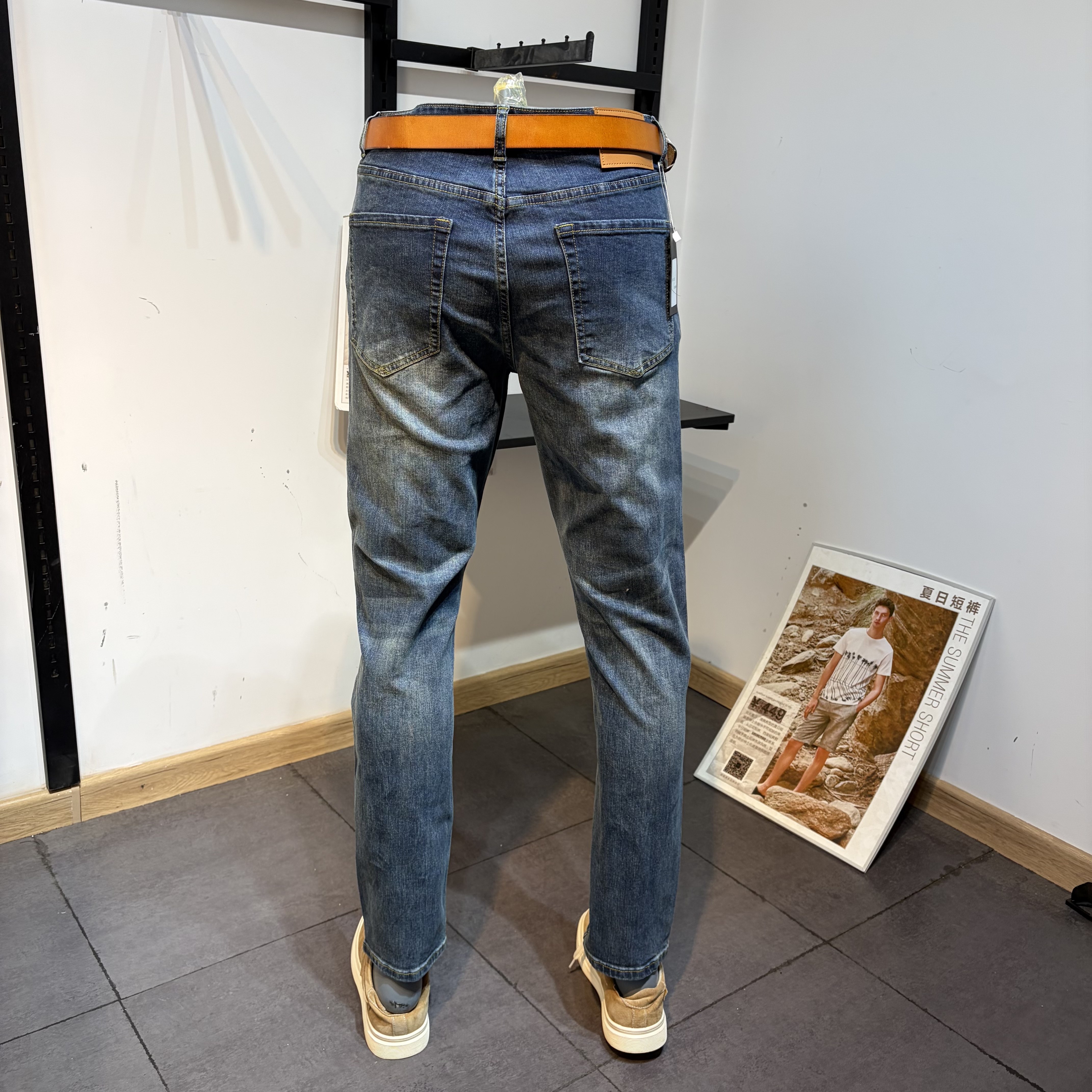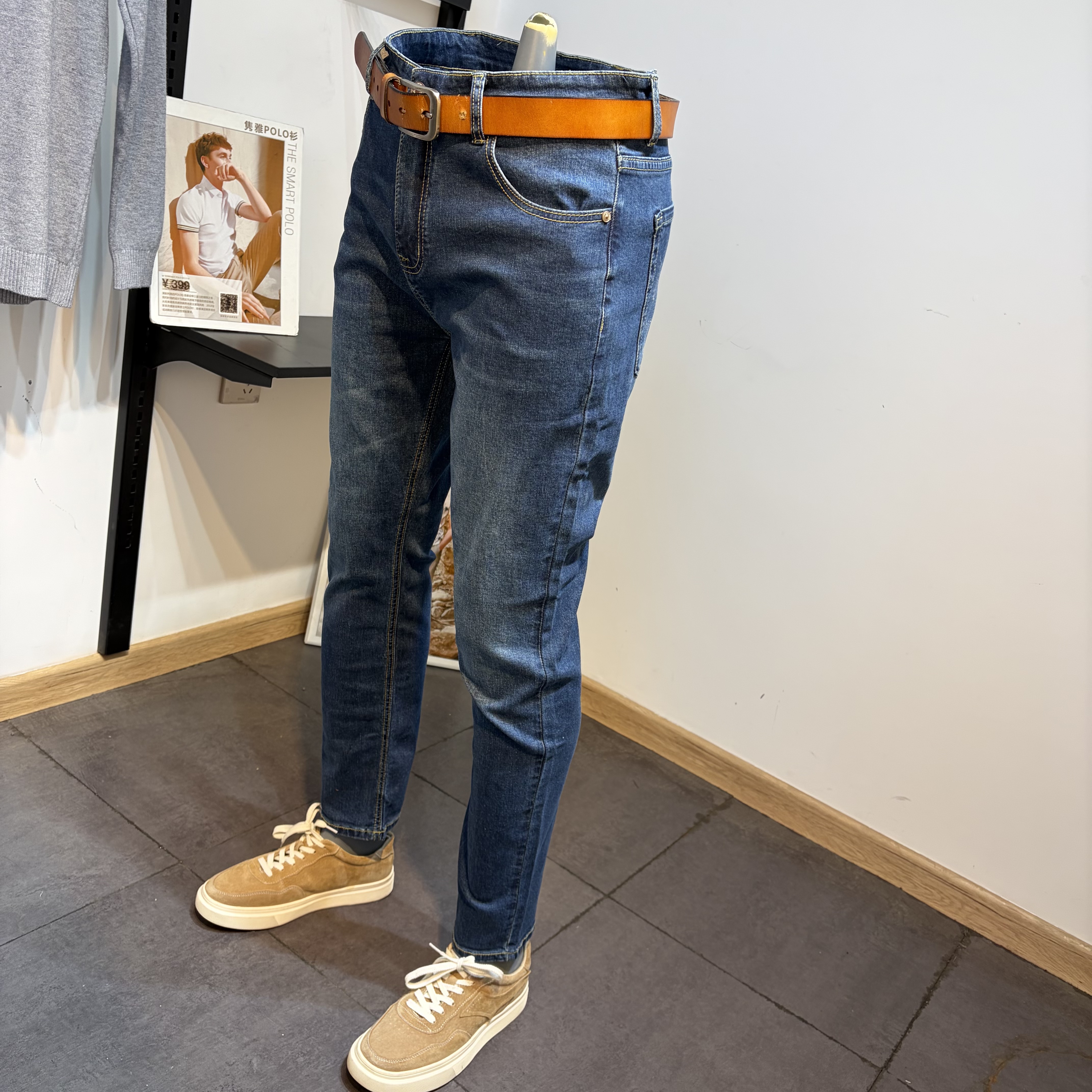 淘宝高品质男装男士春秋季修身小脚小直筒猫须蓝色牛仔裤男长裤子潮
