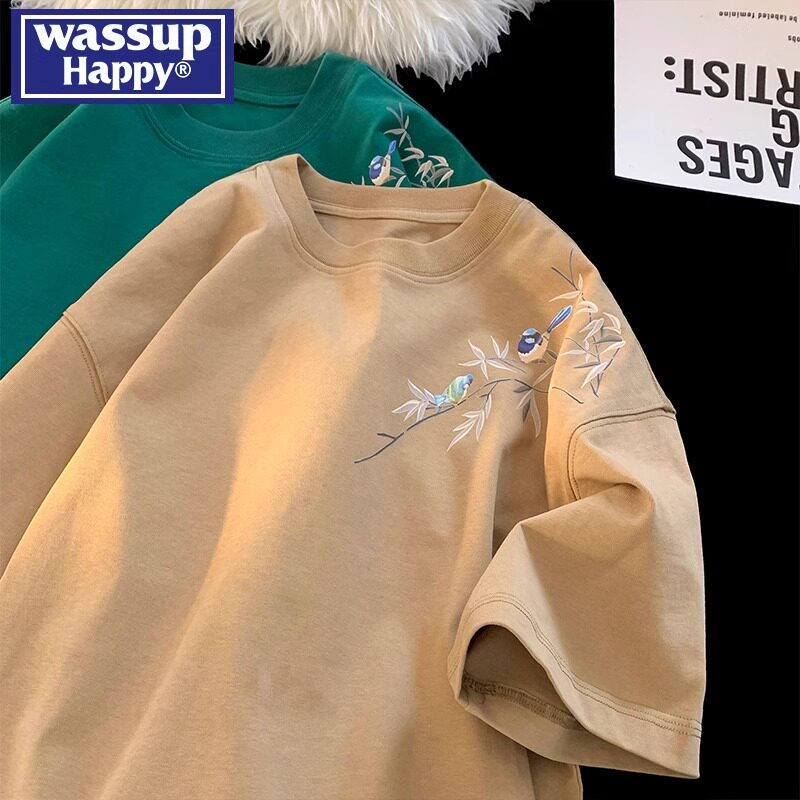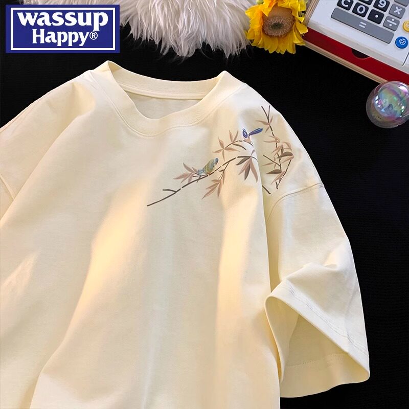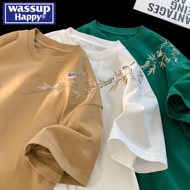 wassup happy国潮短袖t恤男款夏季薄款新中式宽松休闲半袖情侣装