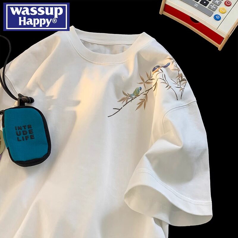 --------------------- wassup happy国潮短袖t恤男款夏季薄款新中式宽松休闲半袖情侣装 【原售价】499元 【现售价】139元 【推荐理由】