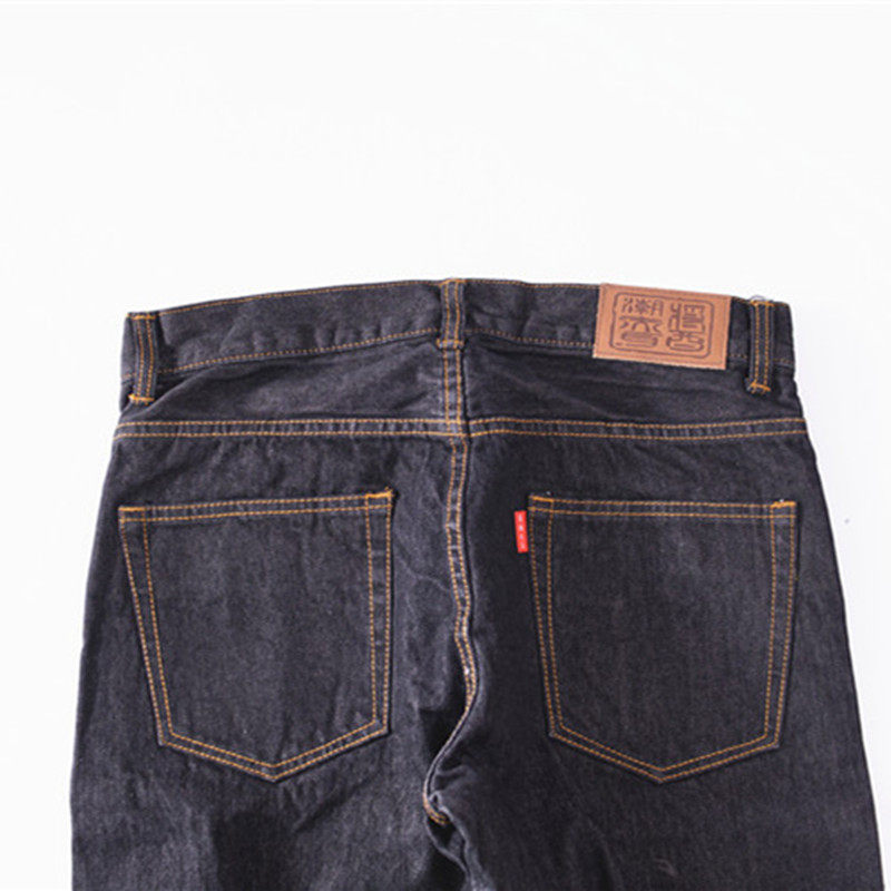 国潮小脚修身直筒黑色红边重磅赤耳丹宁牛仔裤男水洗舒适厚实酱潮