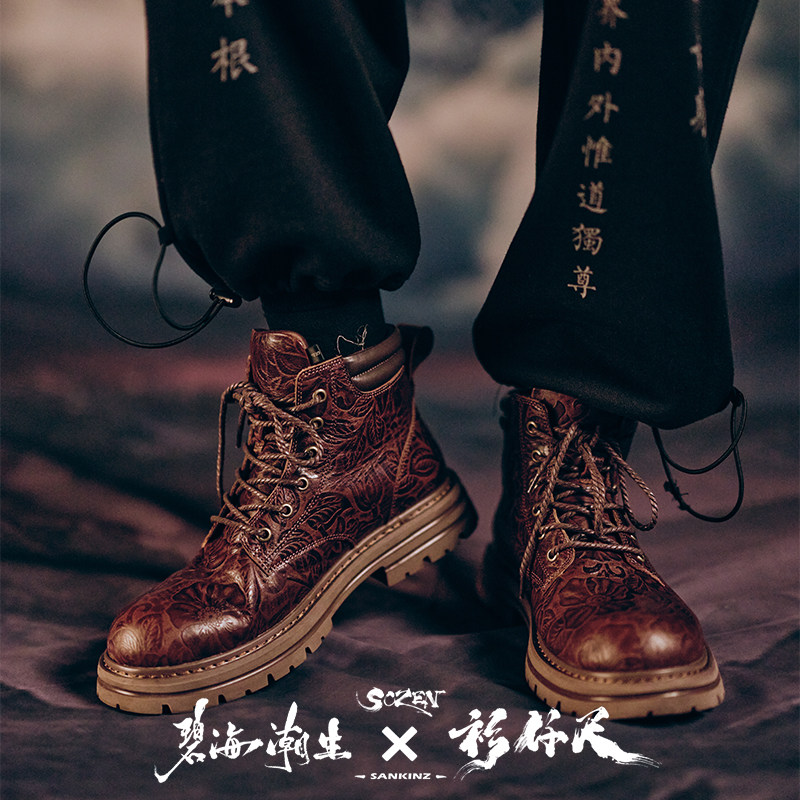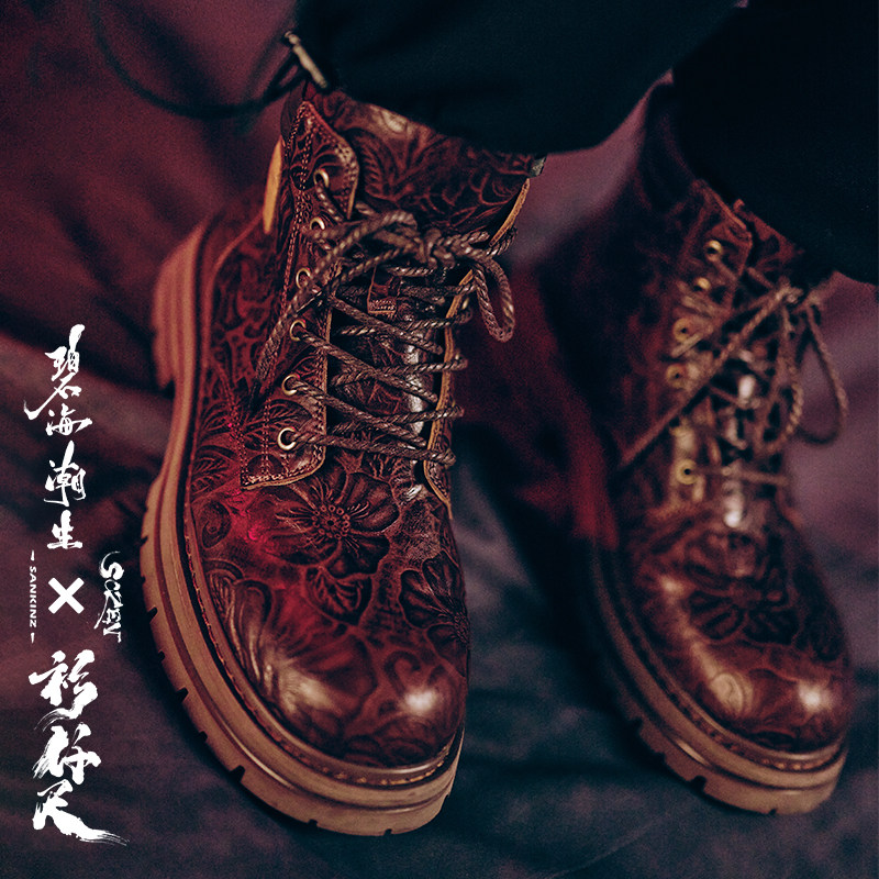 衫仟尺X碧海潮生【繁花马丁靴】秋冬原创国潮牛皮雕花手工户外靴