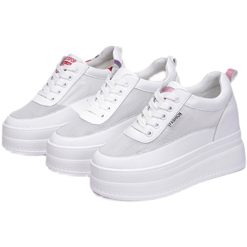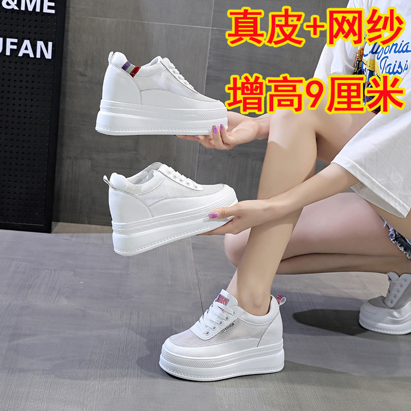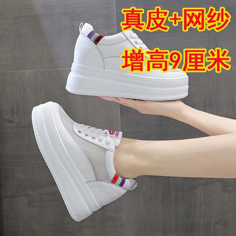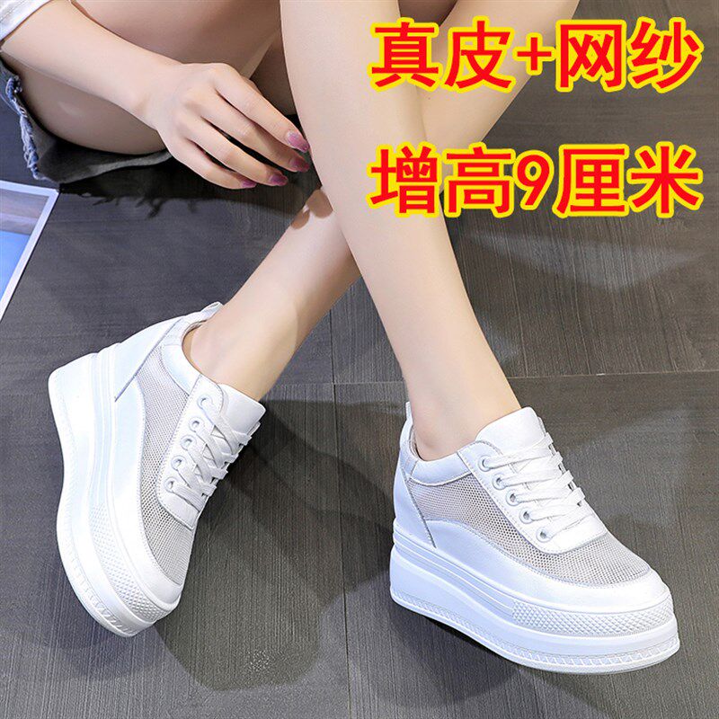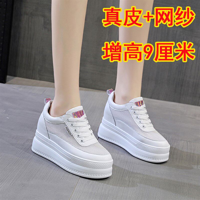 内增高网纱鞋女2022夏季新款真皮厚底休闲L镂空透气单鞋网面小白