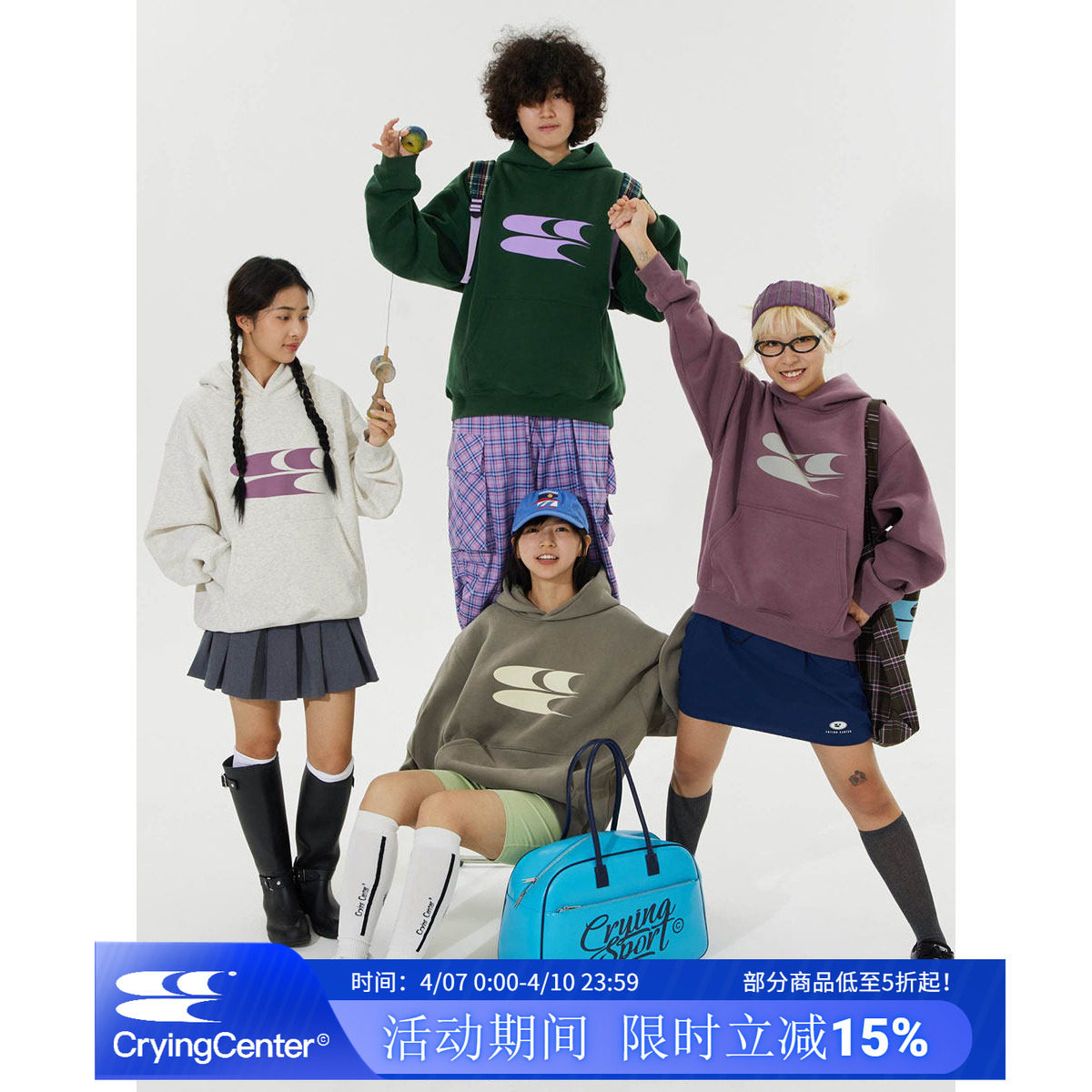 CryingCenter logo印花新版型加绒加厚新疆棉连帽卫衣 哭喊中心