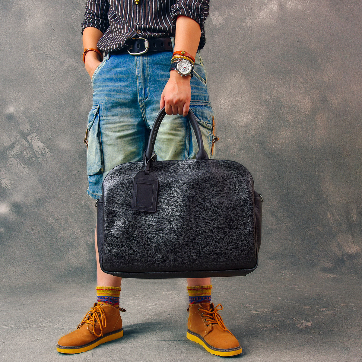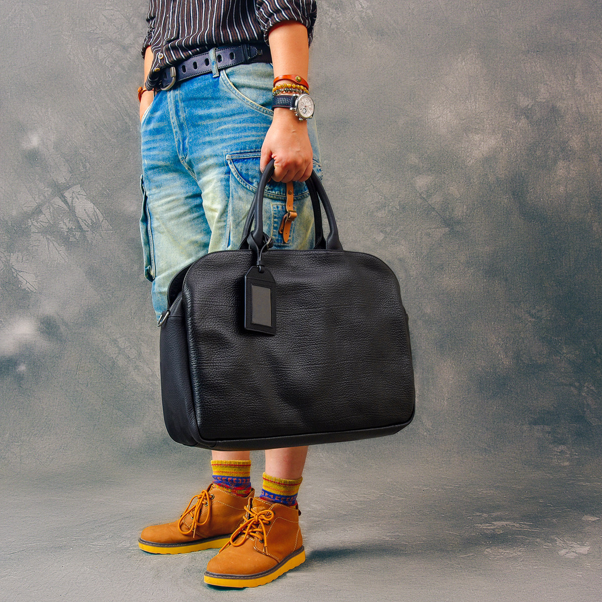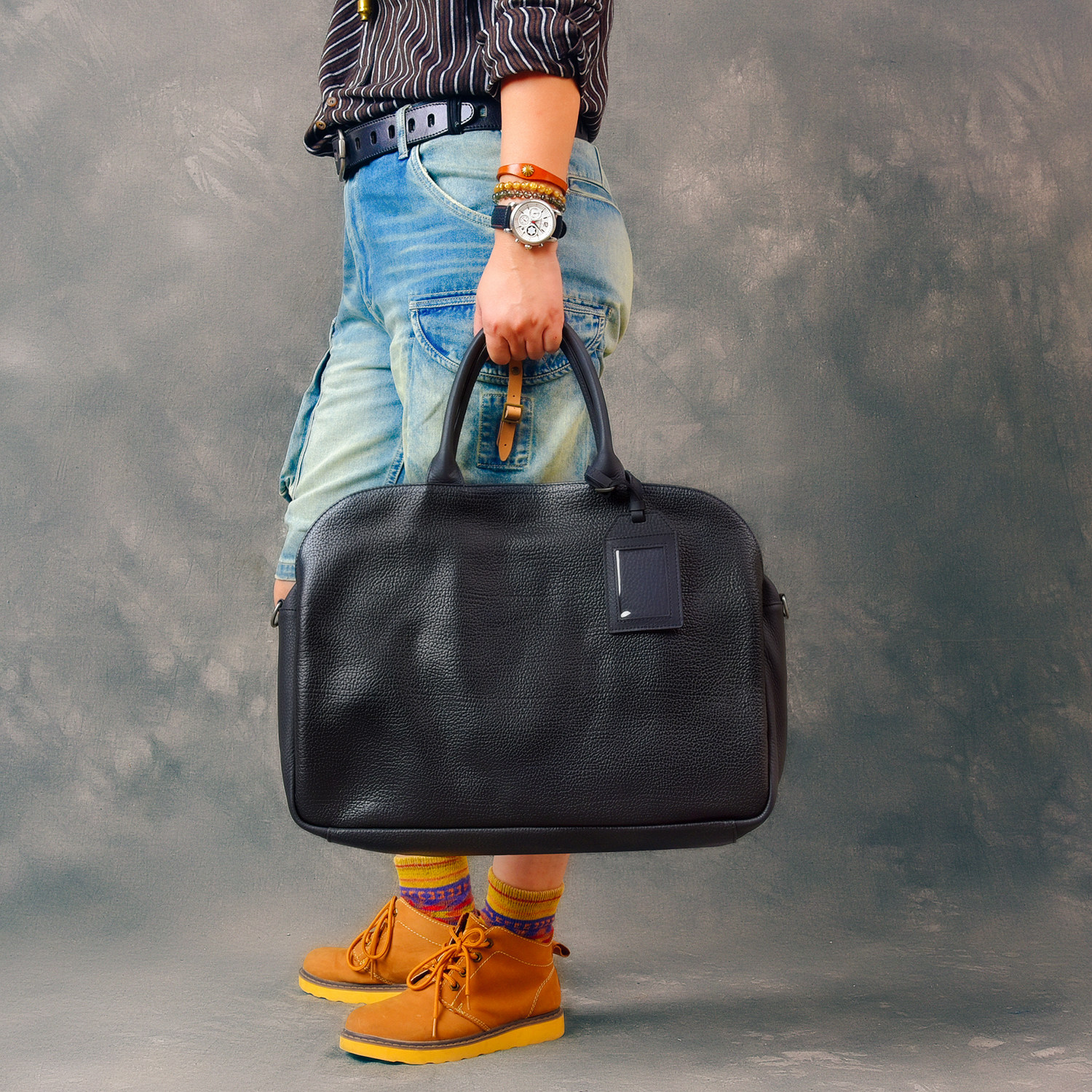 二十四街日系软牛皮大容量短途出差手提公文包真皮潮流大号旅行袋