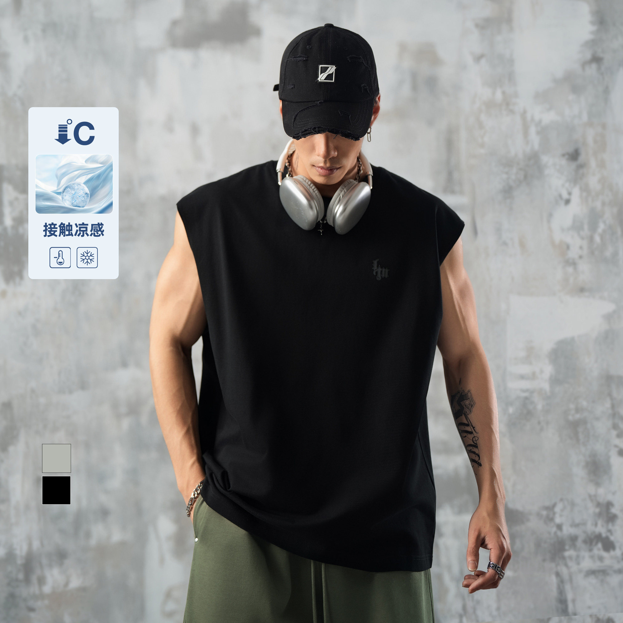 【凉感】鹿家门夏季男士运动背心健身大码宽松透气薄款无袖上衣男
