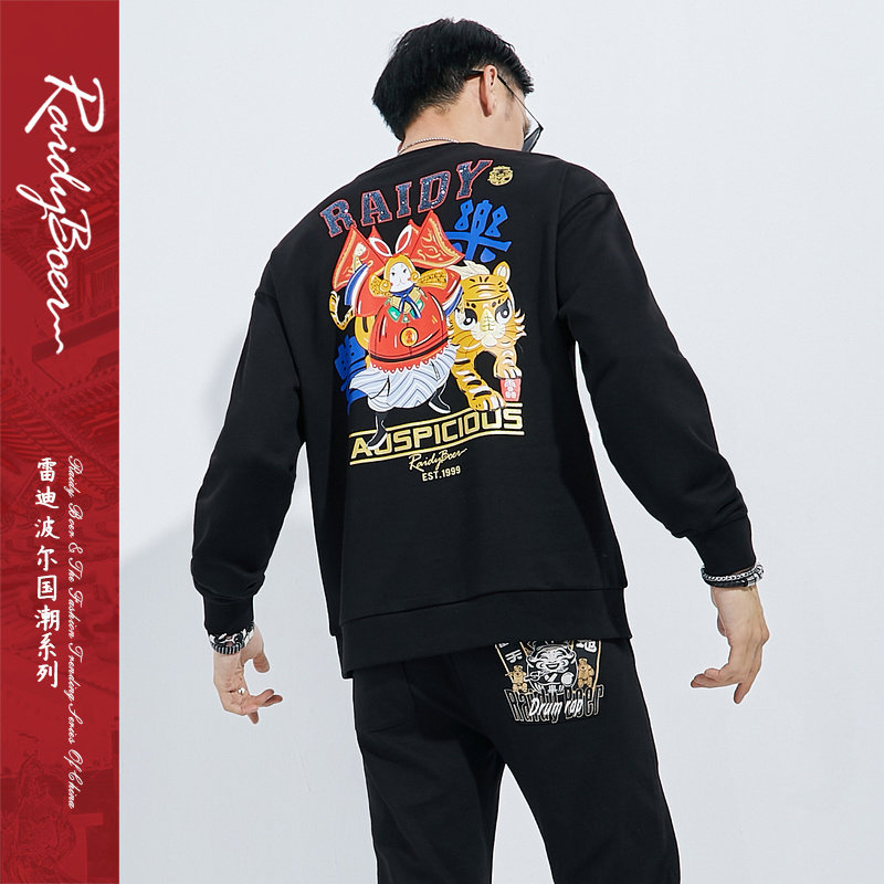 雷迪波尔男士长袖卫衣春秋新款时尚国潮烫印圆领纯棉男装上衣
