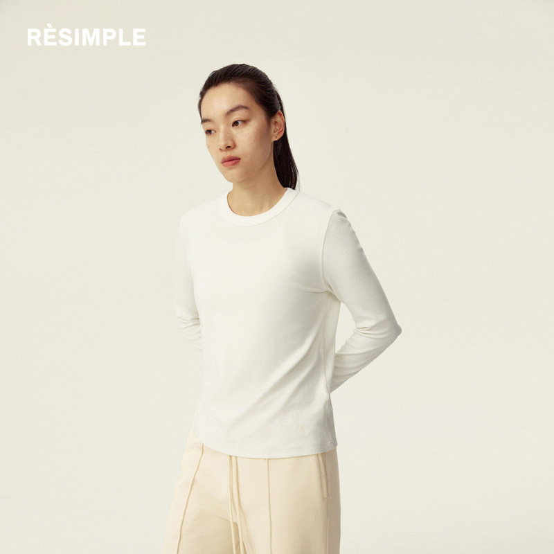 RESIMPLE简单点长袖T恤女圆领基础款纯色上衣百搭高级感1186女装