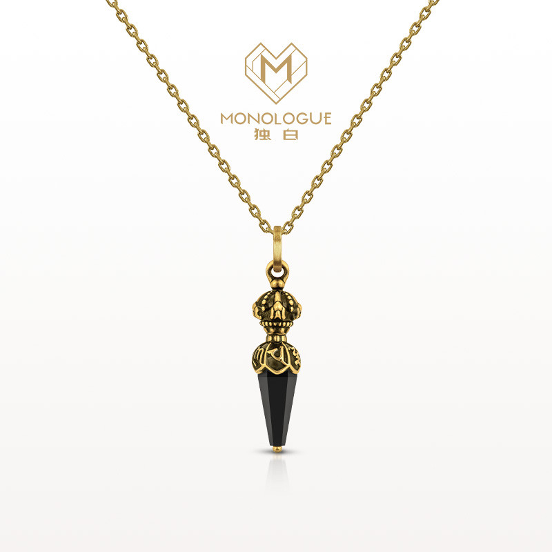 MONOLOGUE独白上古玄灵国潮金刚杵黑玉髓复古黄金吊坠配绳MR1531