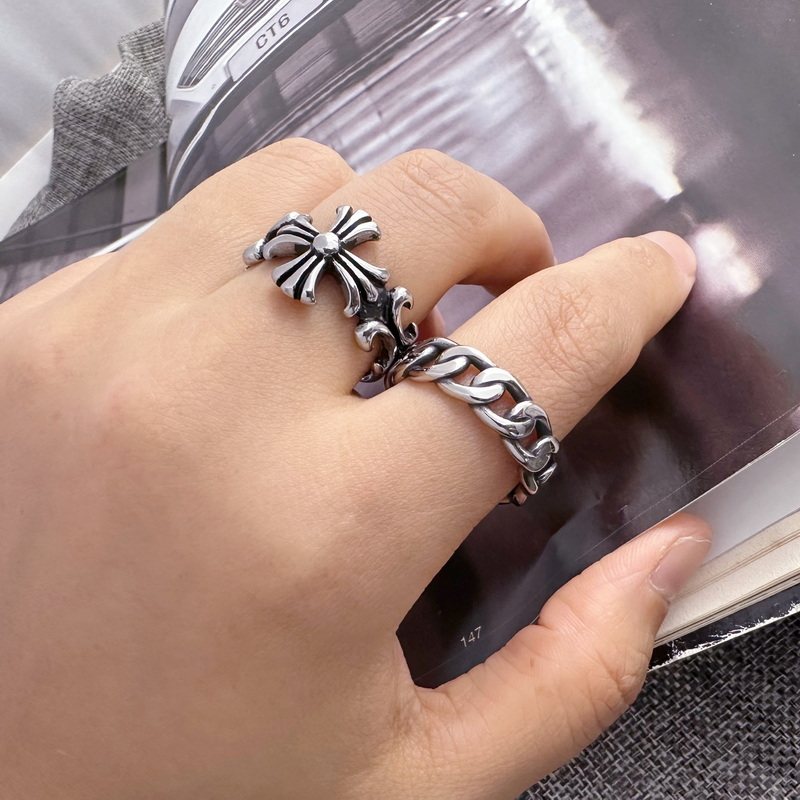 韩国简约冷淡风复古做旧钛钢不掉色链条麻花戒指男潮女编织尾戒