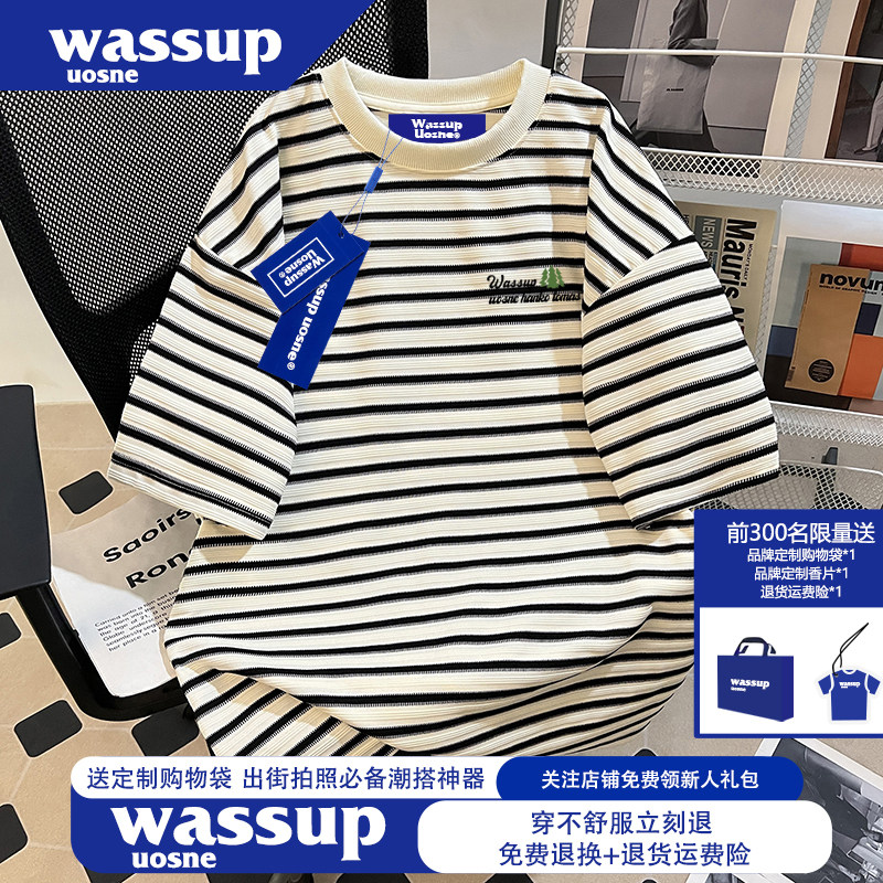 --------------------- WASSUP美式潮牌高质量重磅条纹男士短袖t恤2026新款夏季半袖上衣 【原售价】129元 【现售价】69.9元 【推荐理由】