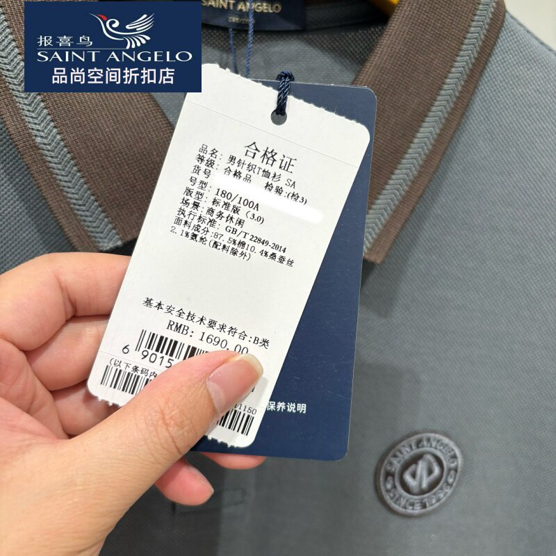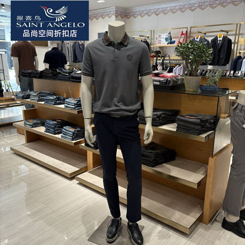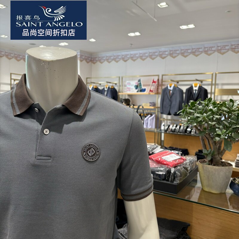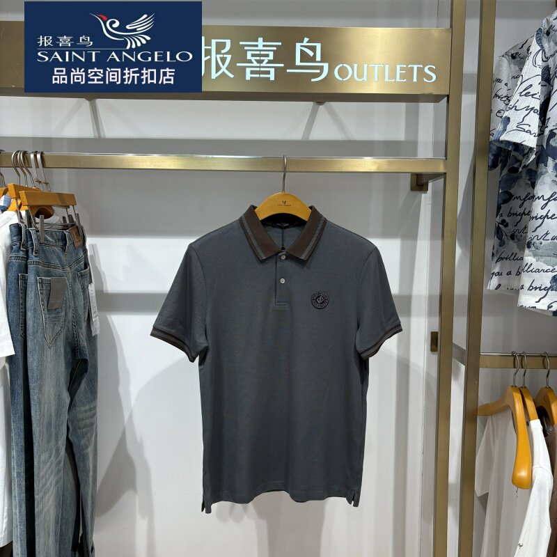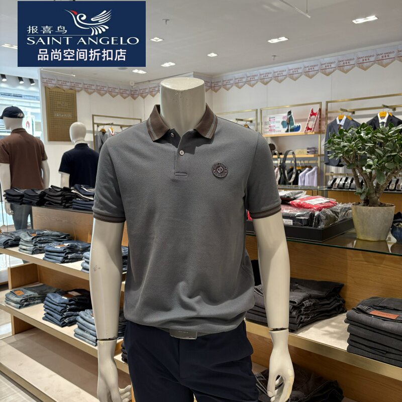 淘宝报喜鸟男商务休闲新款短袖T恤翻领蚕丝弹力亲肤棉透气POLO 高级灰