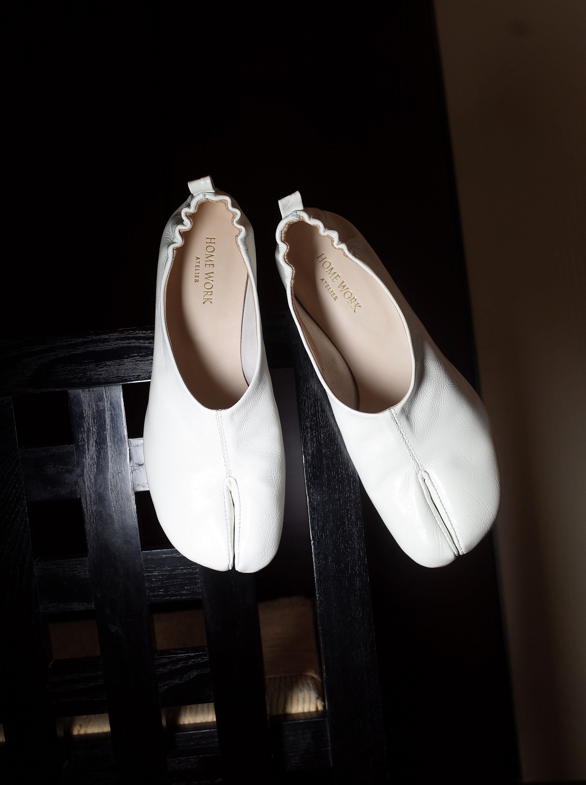 HOME WORK原创设计师手工分趾忍者tabi牛皮低跟套脚女士单鞋白色
