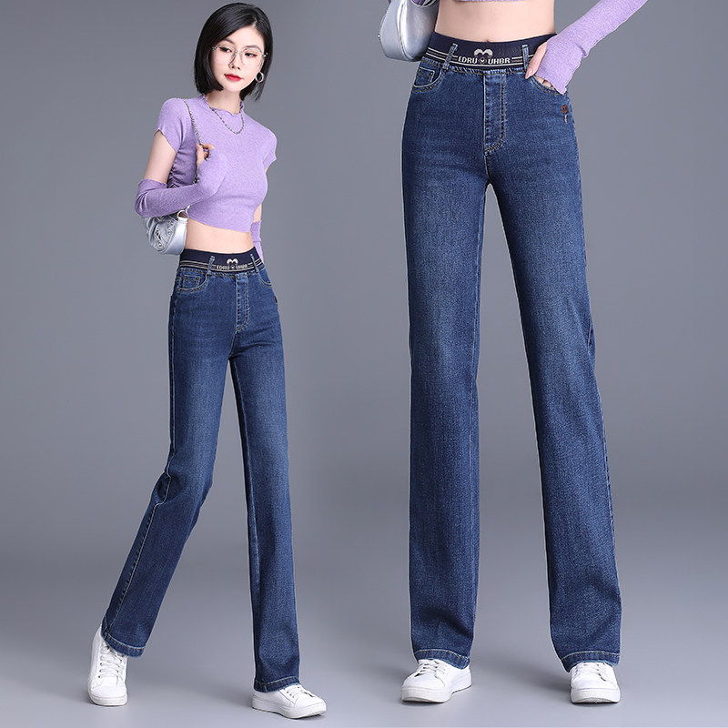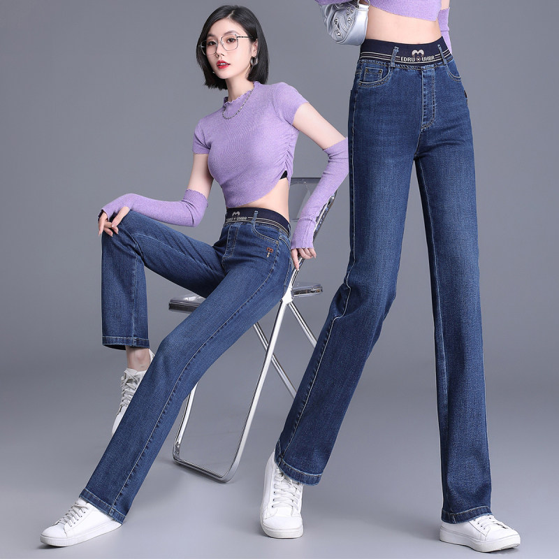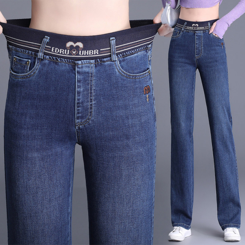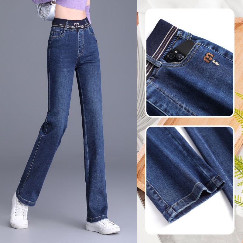 逸阳2026新款女裤春秋品牌折扣店牛仔裤弹力修身松紧腰直筒长裤子