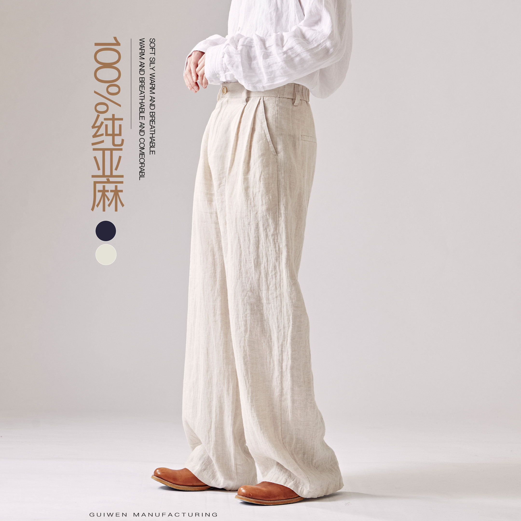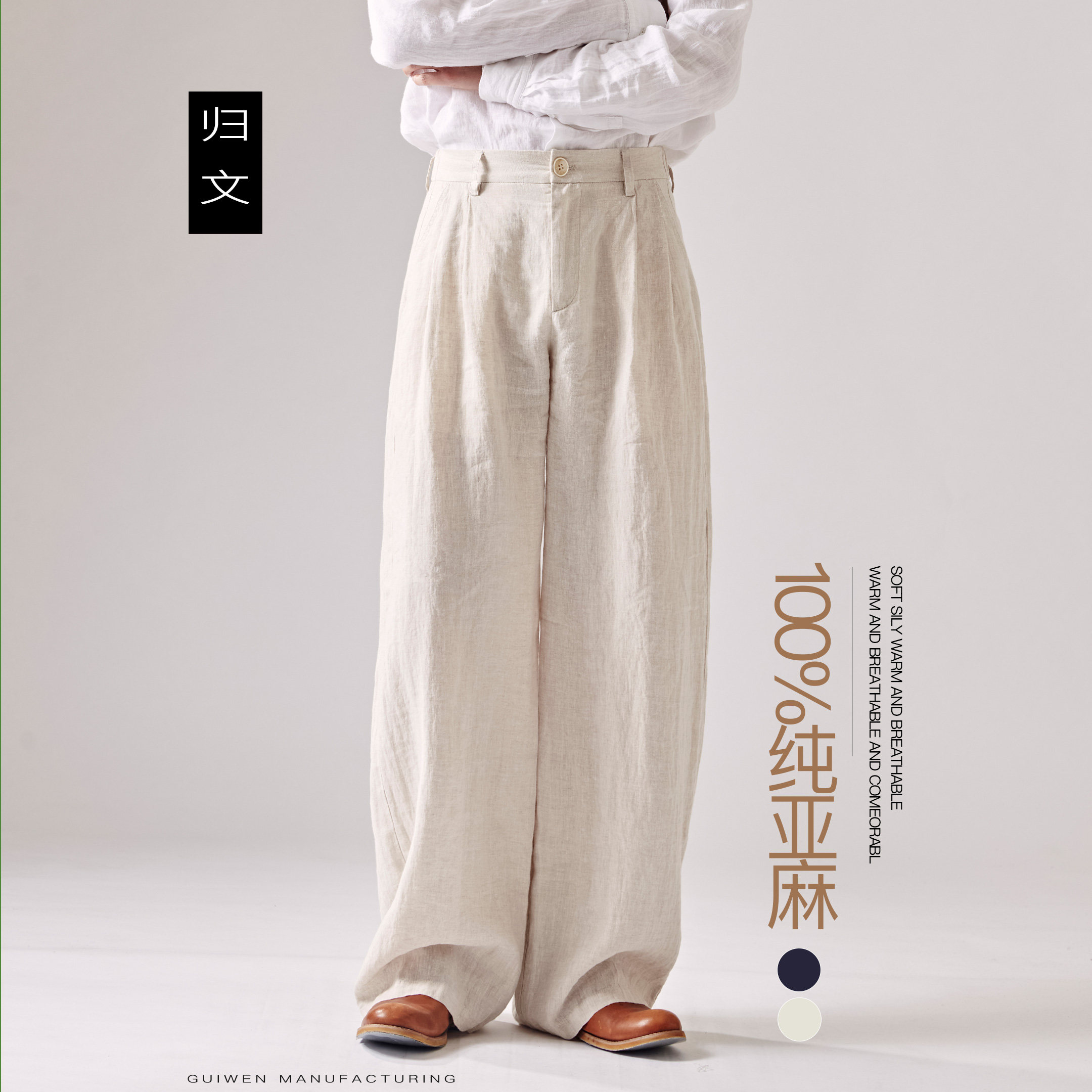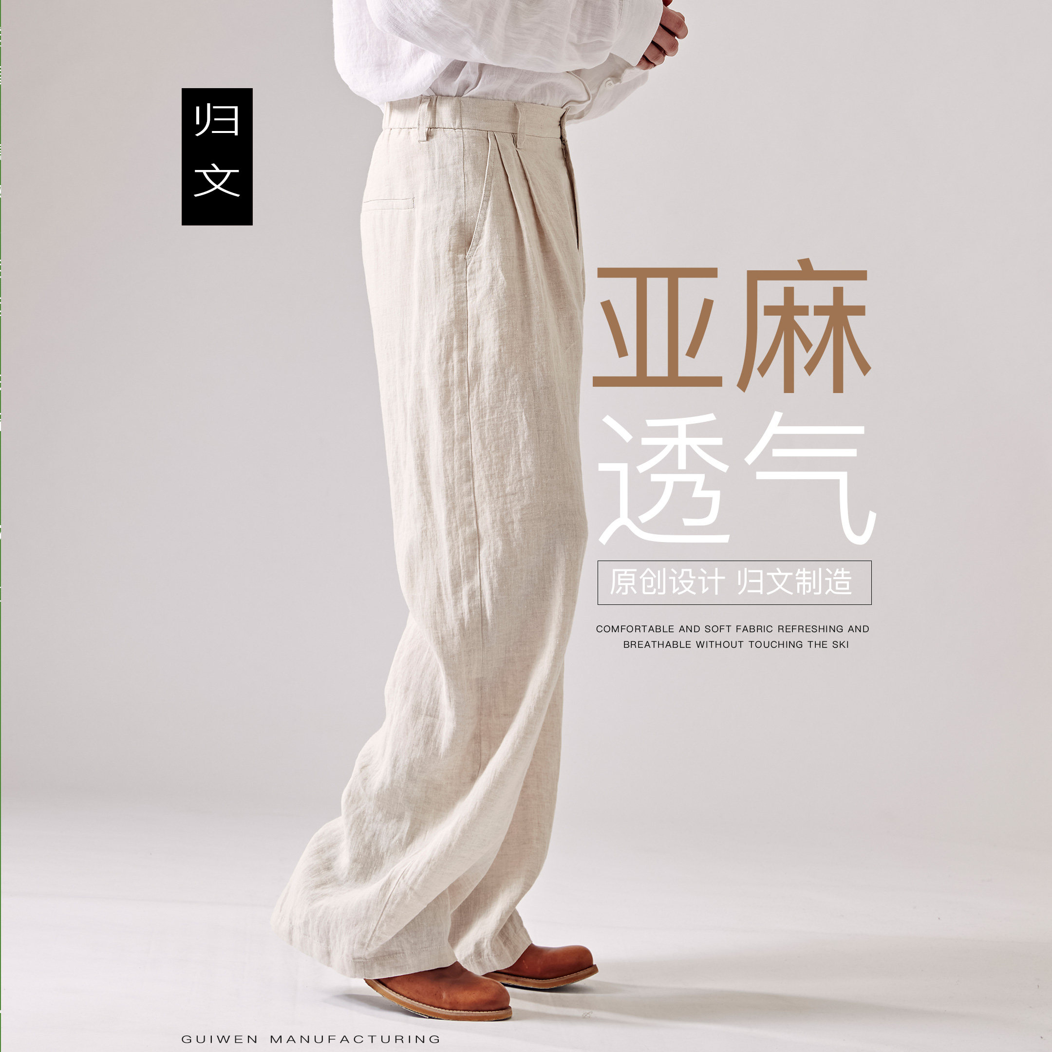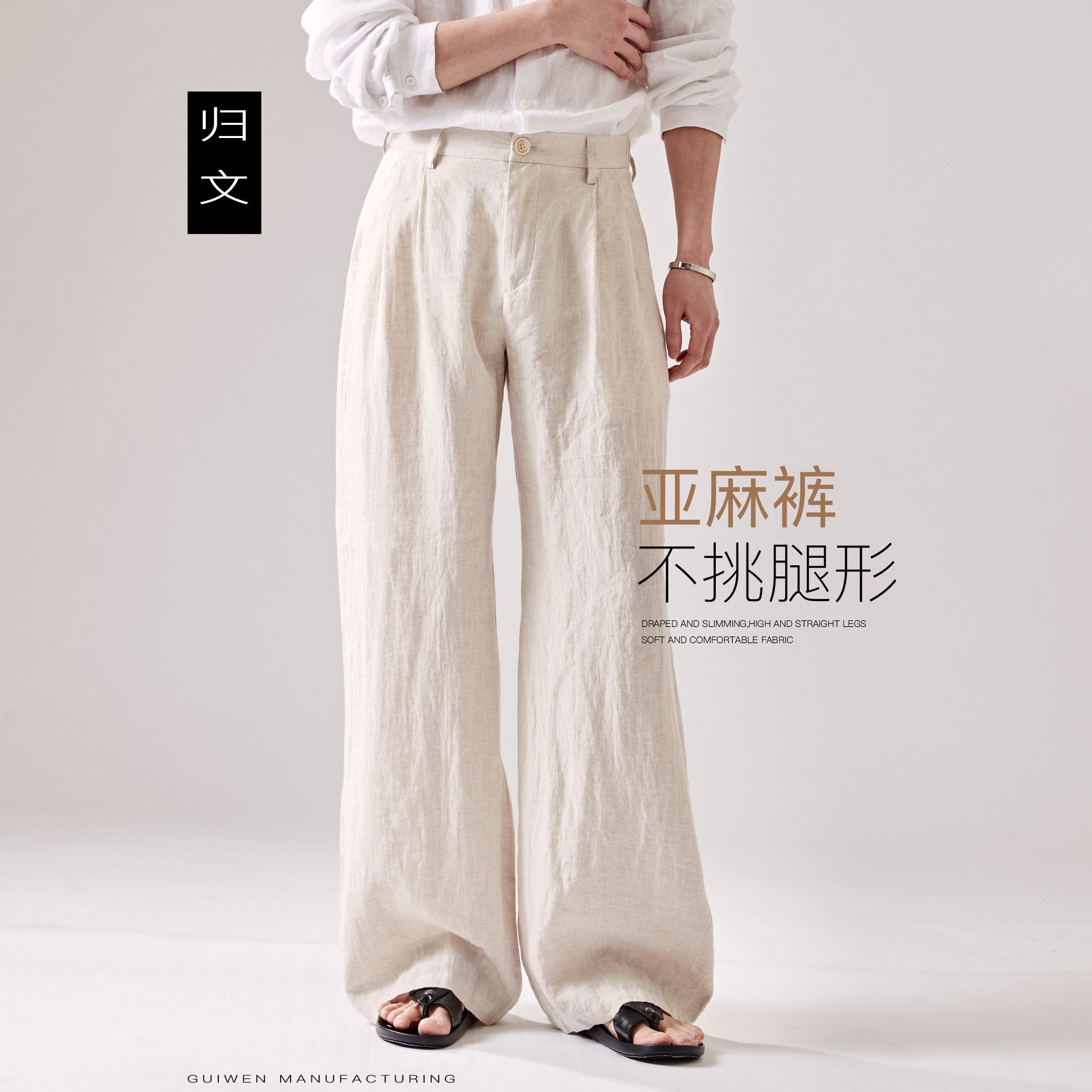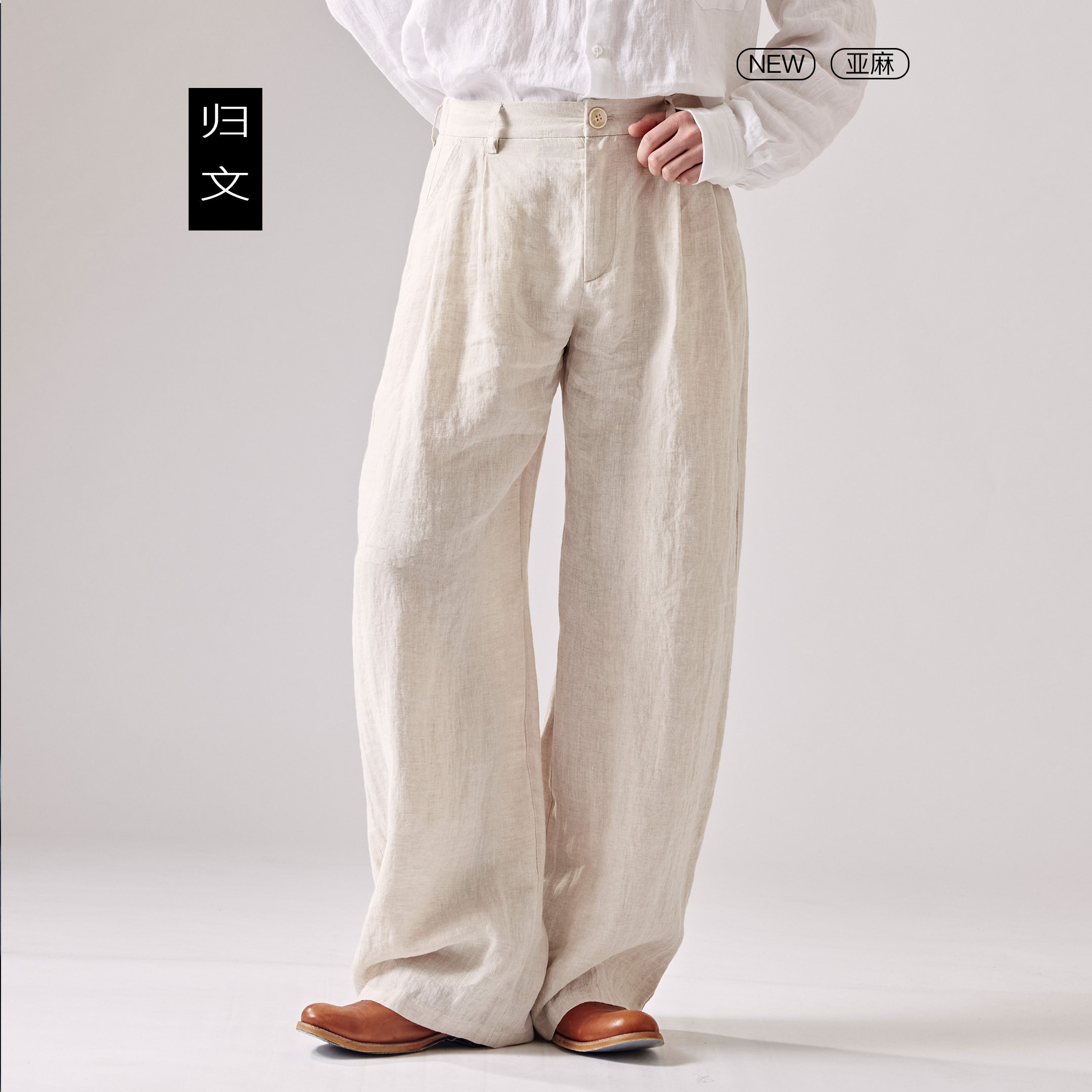 --------------------- 归文纯亚麻直筒裤男夏季宽松男裤直筒裤老钱风极简休闲裤透气西裤 【原售价】256元 【现售价】225元 【推荐理由】