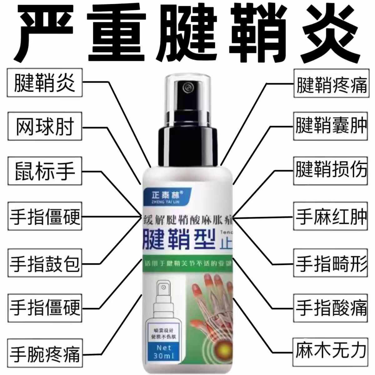治疗腱鞘喷雾剂手指关节疼痛膏专用手腕大拇指鼓包网球肘特效神器