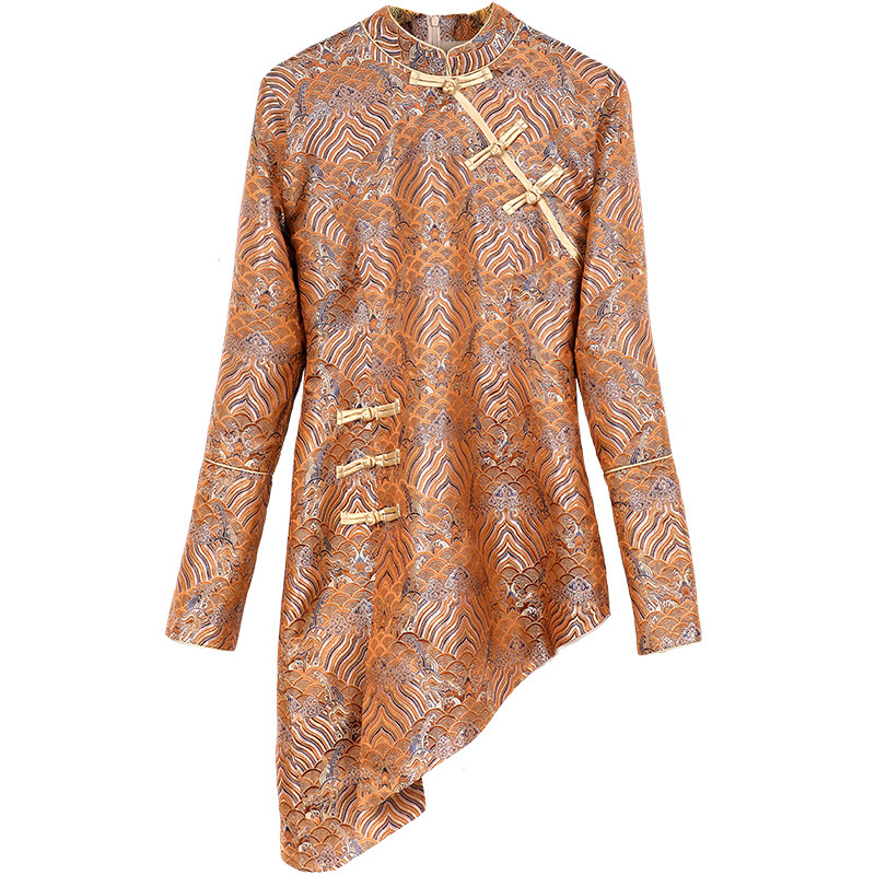 --------------------- 扶郎2026原创设计师 时髦复古风神秘性感 不对称下摆长袖唐装上衣 【原售价】485元 【现售价】278.7元 【推荐理由】
