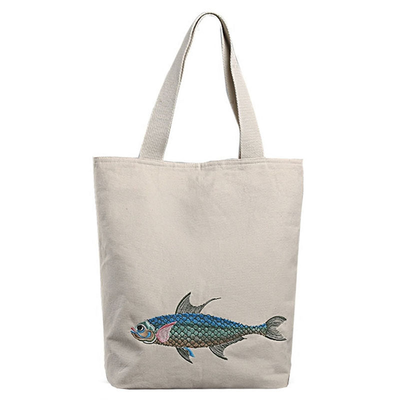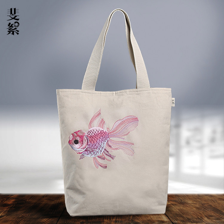 斐絮原创新派刺绣女包单肩手提休闲鱼系列简约文艺帆布布包
