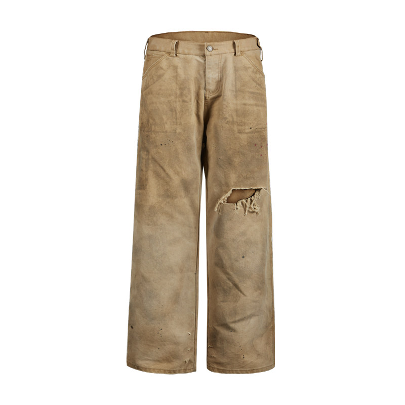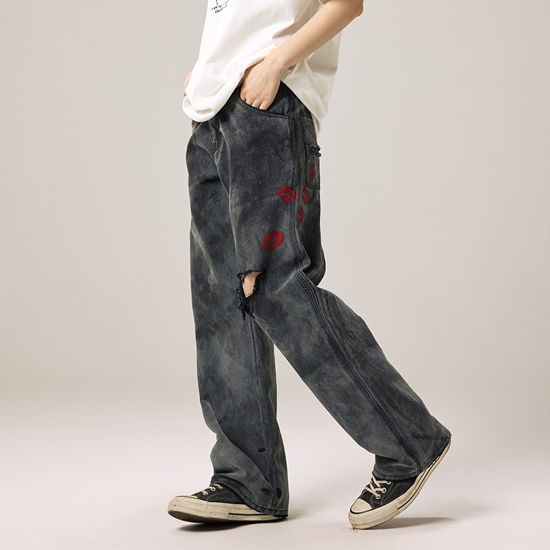 Remedy【D-kiss】国潮宽松直筒工装长裤美式复古做旧破洞休闲裤男