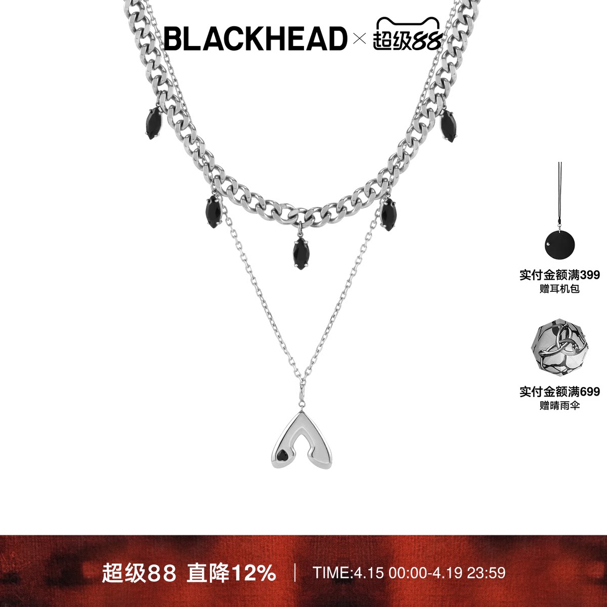--------------------- 【朱志鑫同款】BLACKHEAD/黑头朋克蛾双层锆石项链个性简约原创 【原售价】499元 【现售价】439元 【推荐理由】