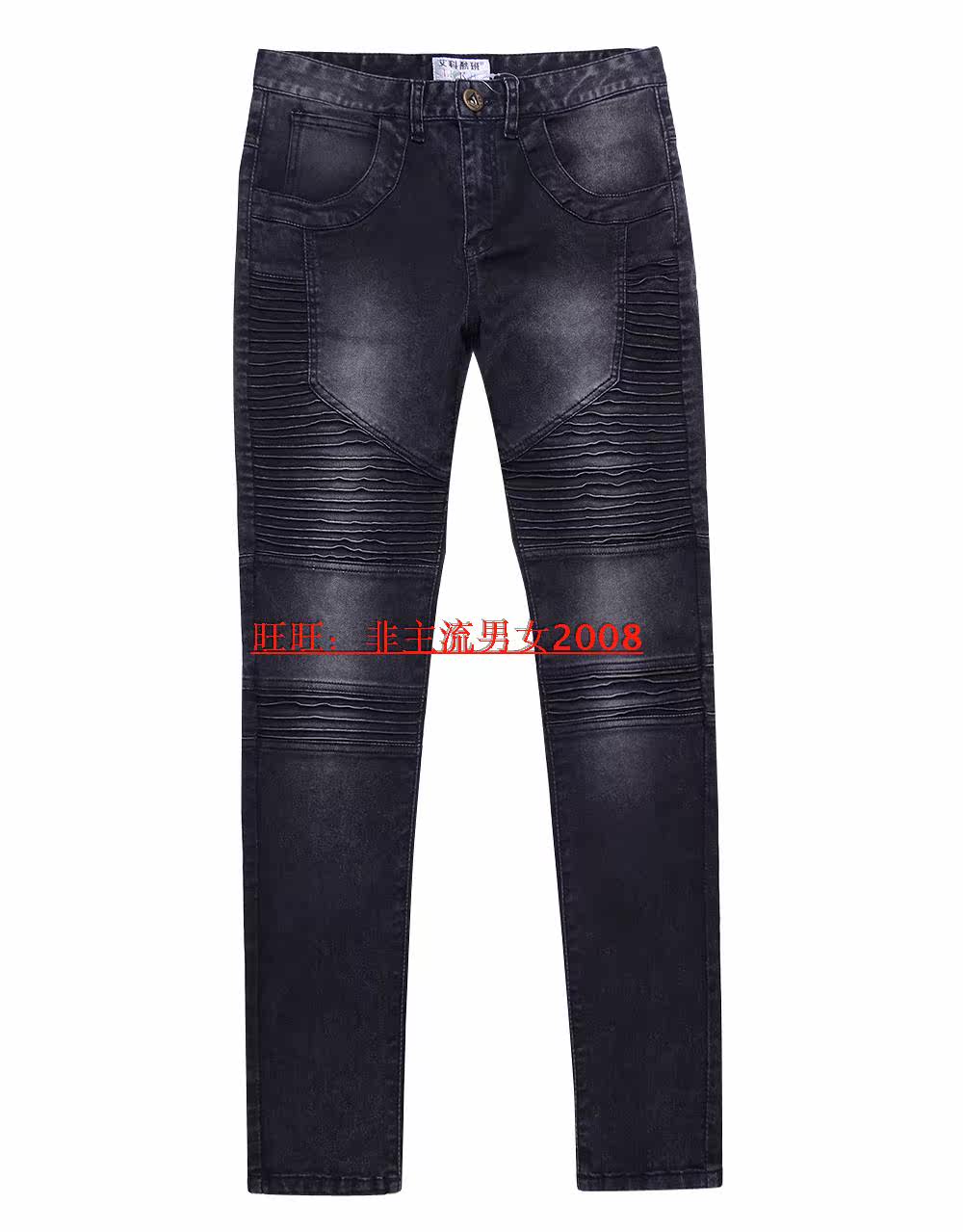 --------------------- 欧美街头演出机车男皱褶拼接修身小脚微弹大码牛仔裤韩版男长靴裤 【原售价】129元 【现售价】39.99元 【推荐理由】