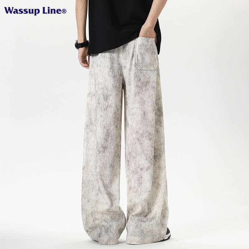 WASSUP Line潮牌扎染脏脏裤男款夏季速干冰丝宽松垂感休闲拖地裤