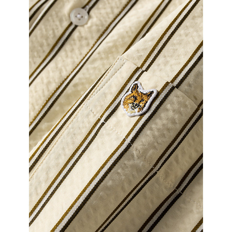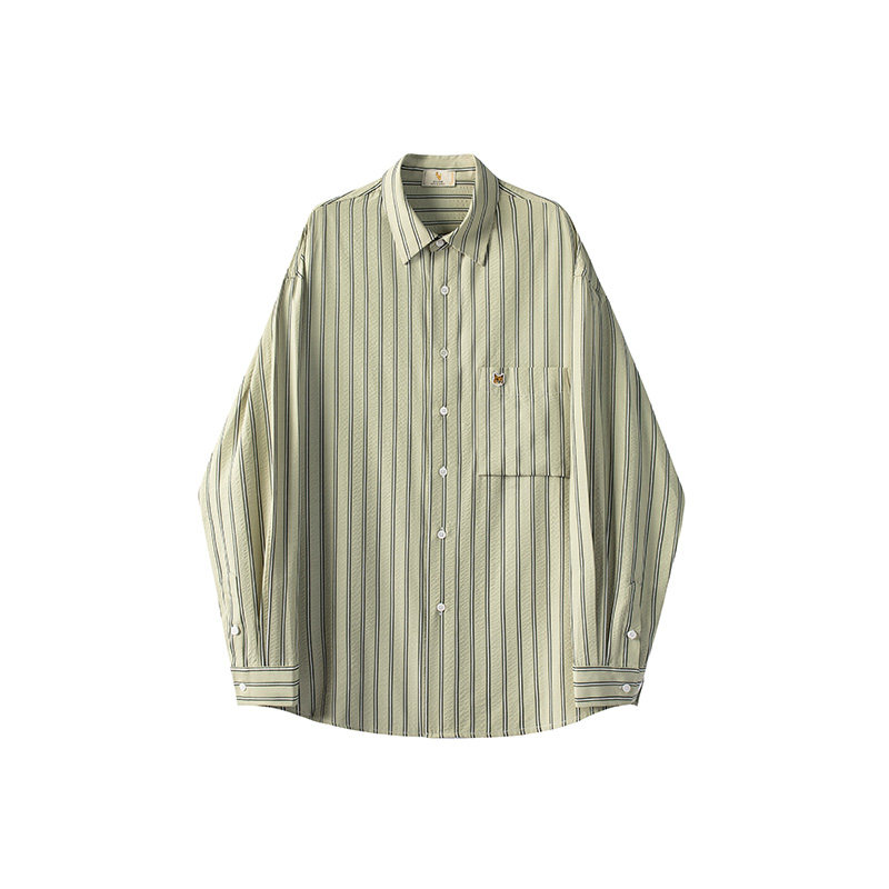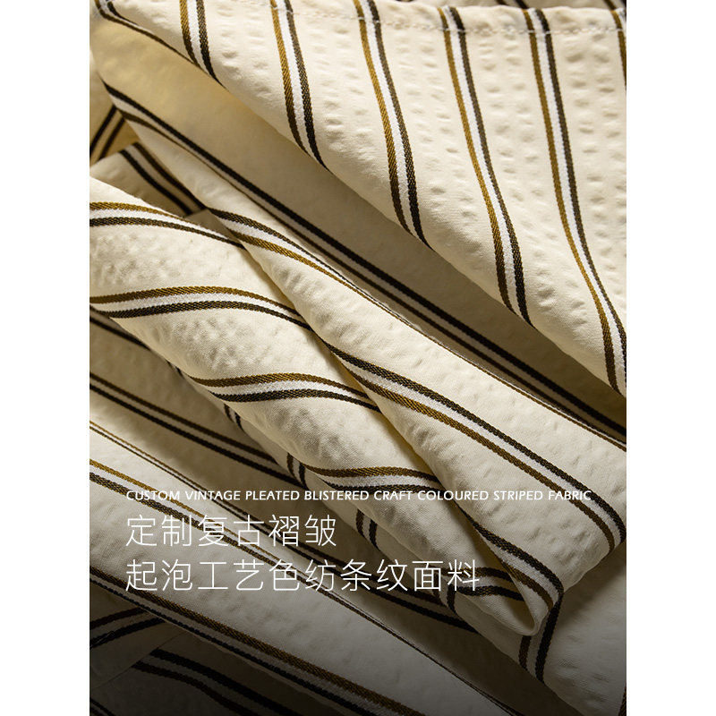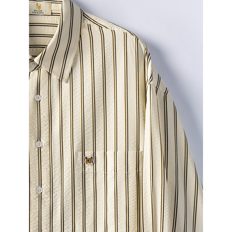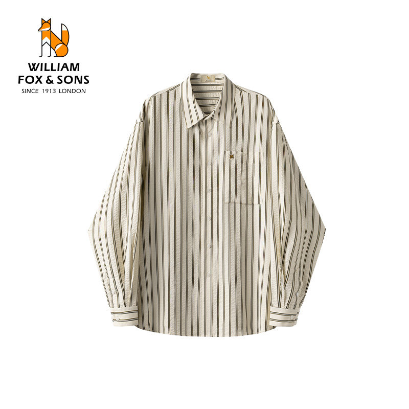 淘宝英国小狐狸男装2026春秋新型起泡工艺色纺提花条纹休闲长袖衬衫男