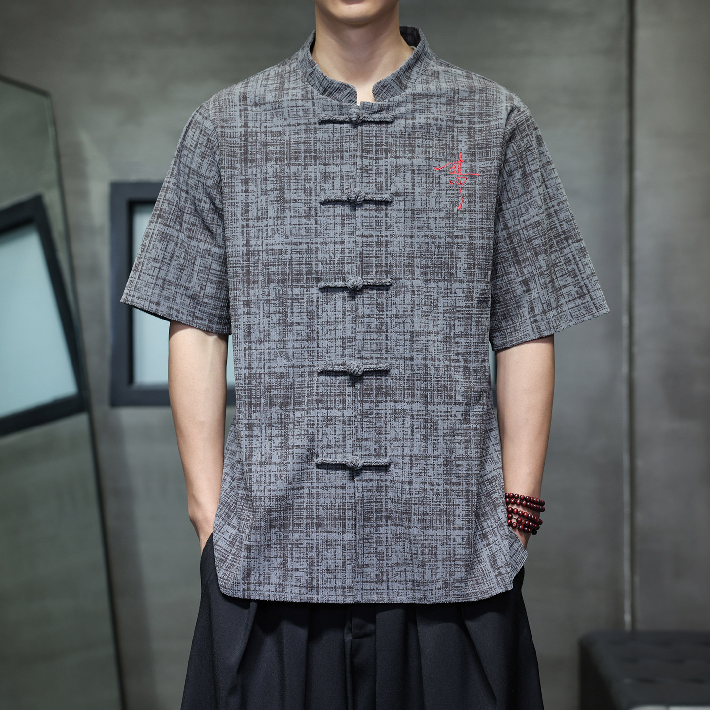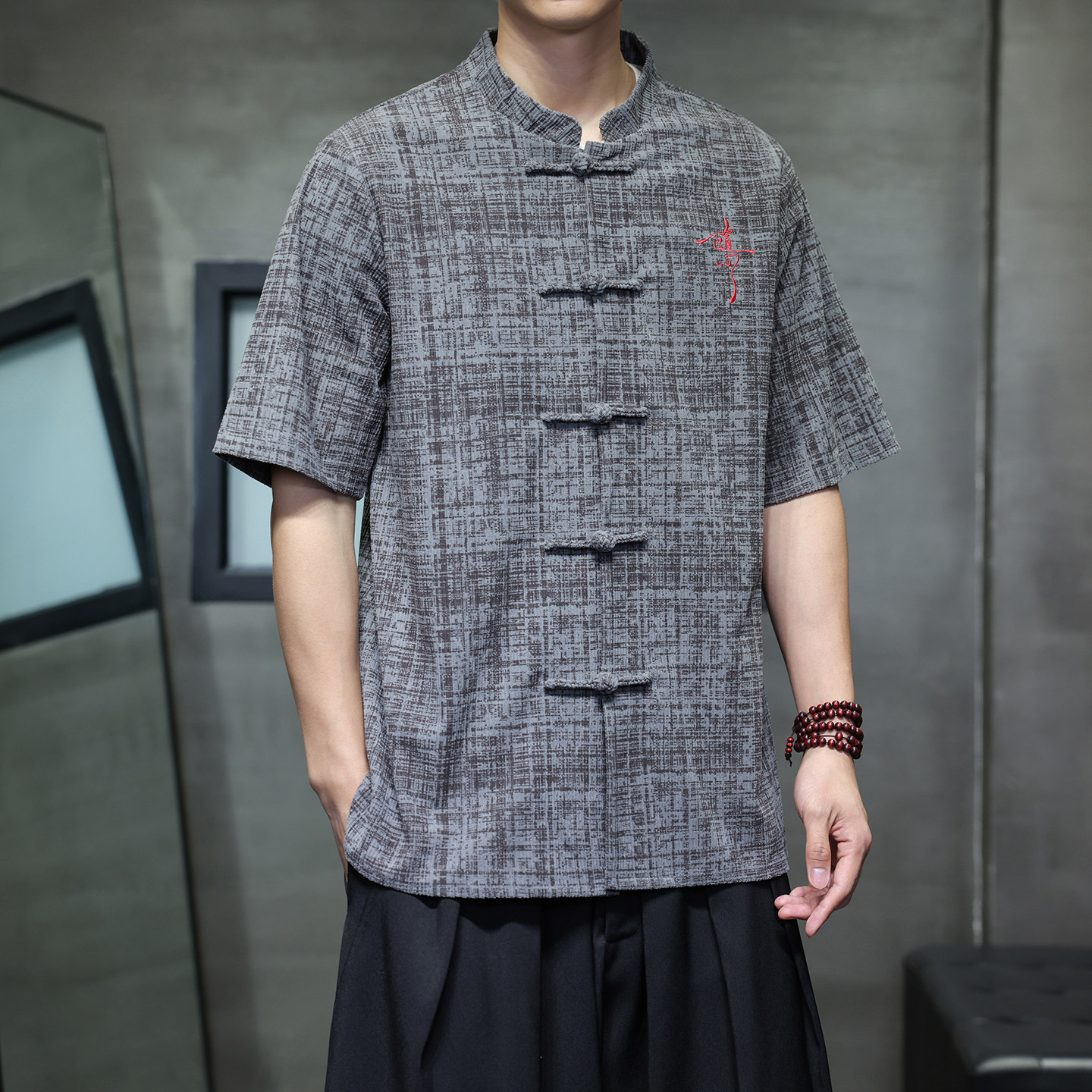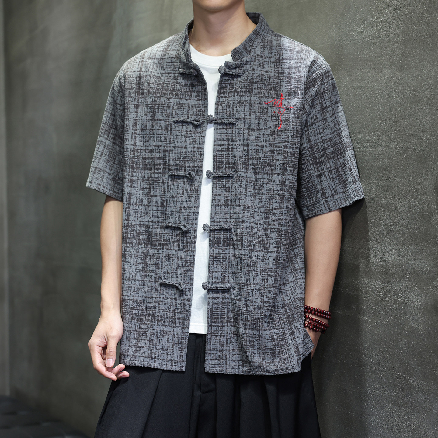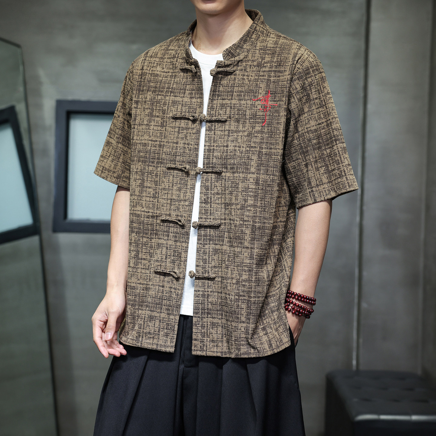 --------------------- 夏季男式中国风短袖衬衫盘扣刺绣禅茶服五分袖汉服唐装大码男衬衣 【原售价】138元 【现售价】118元 【推荐理由】