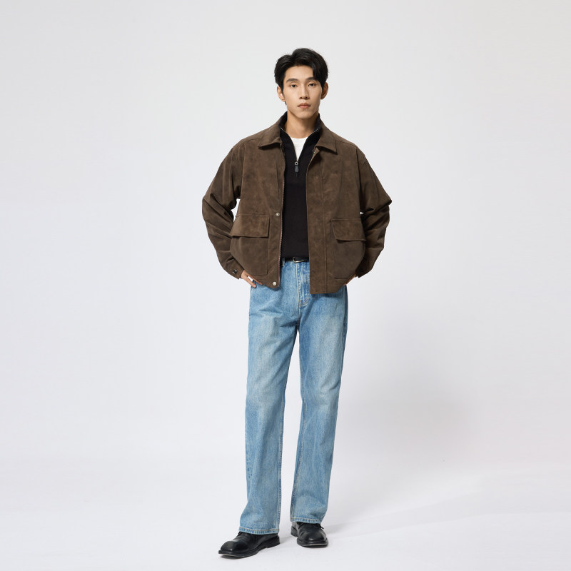 TUTM男装 【巴恩风】仿麂皮绒PU皮夹克男复古春秋季休闲外套宽松