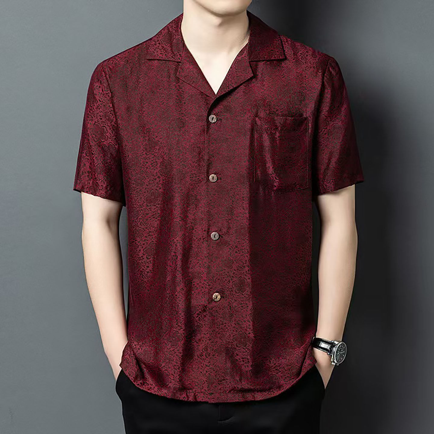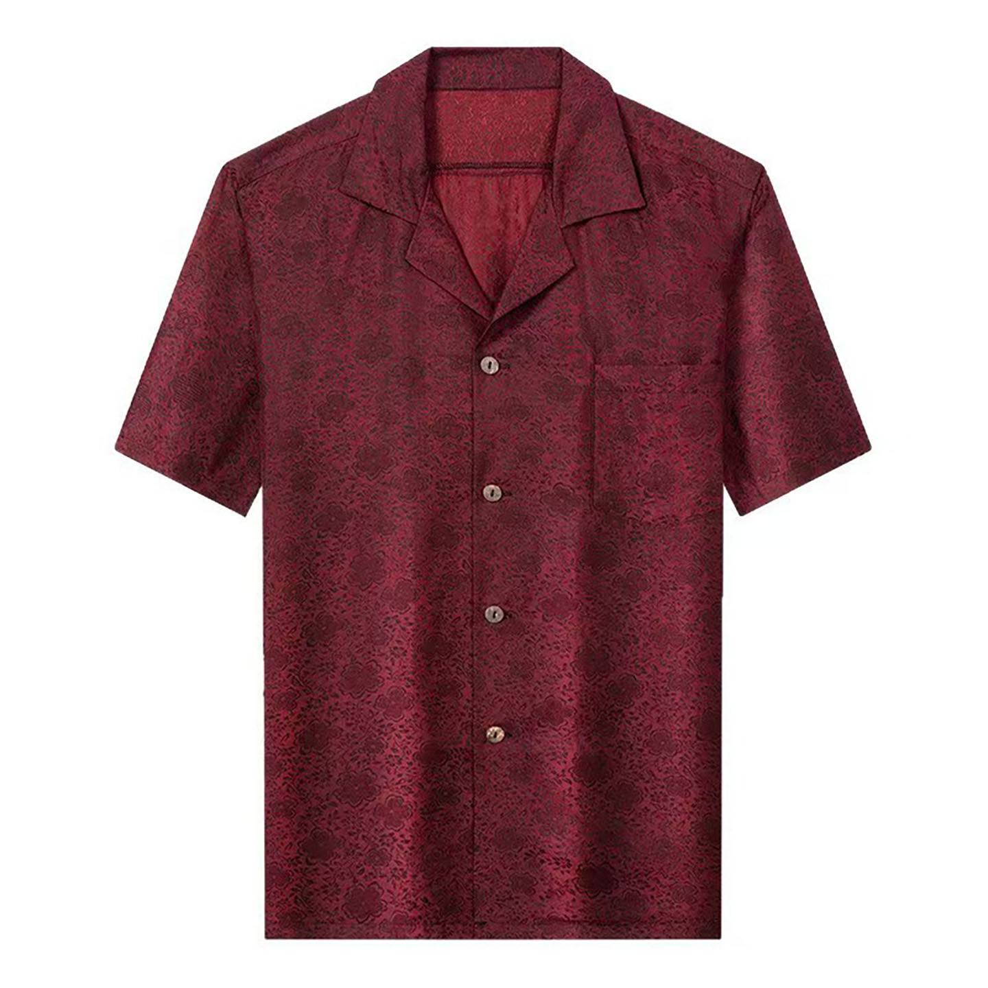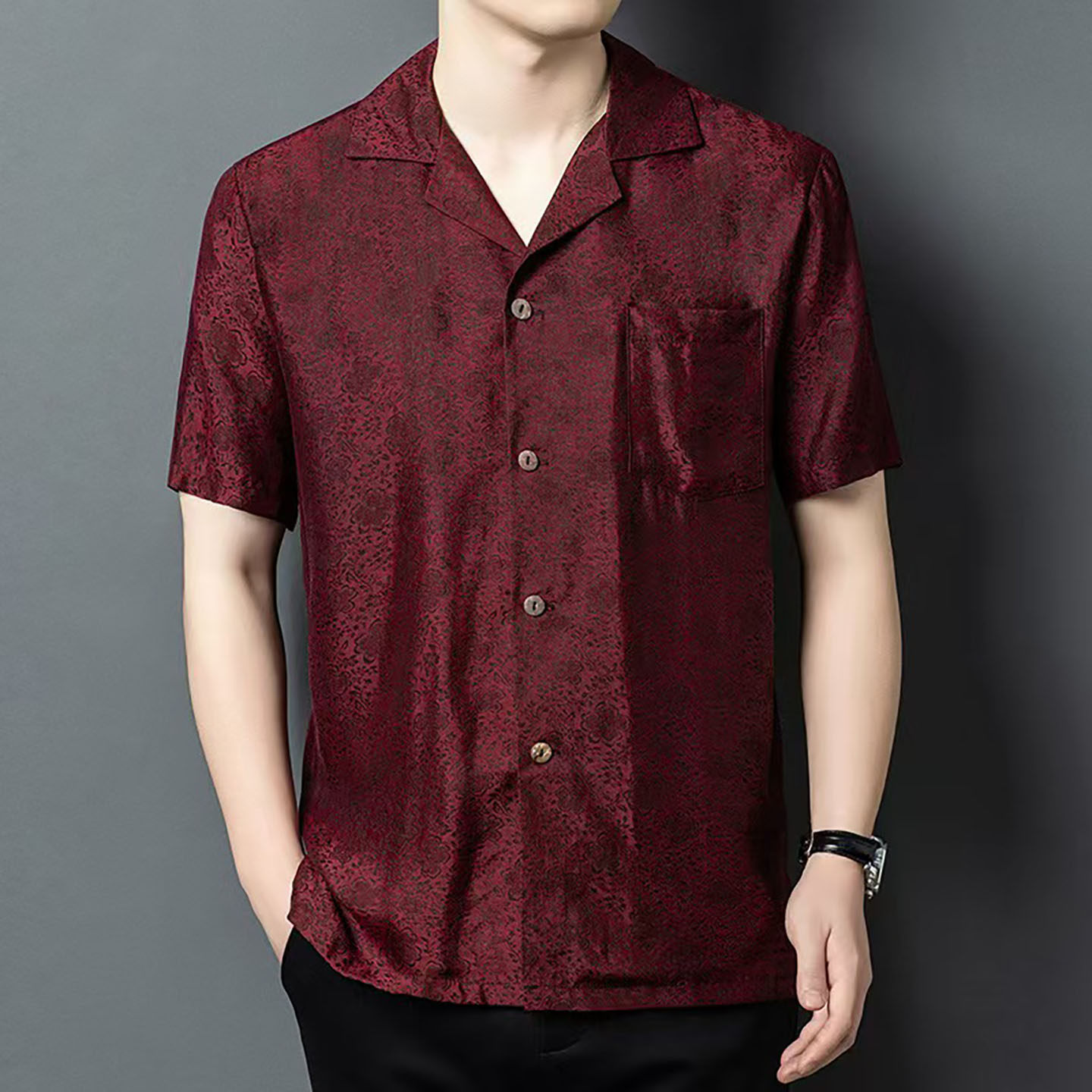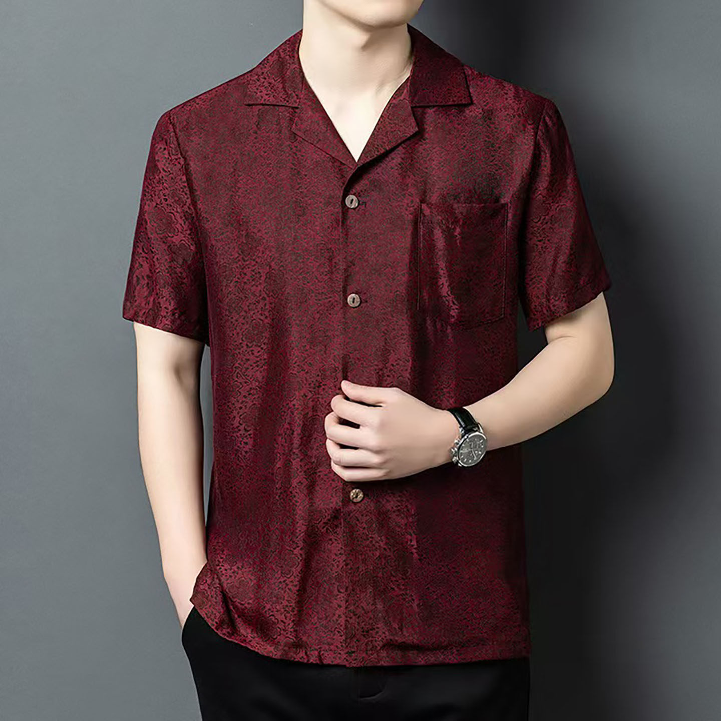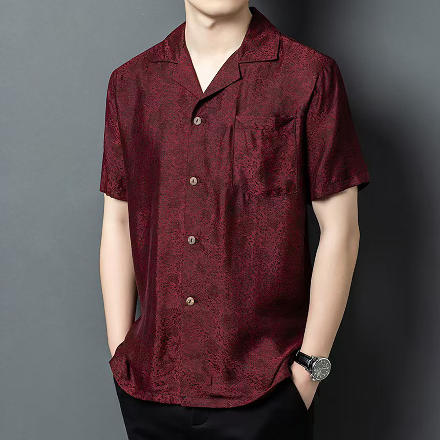大码男装短袖衬衣真丝桑蚕丝新中式国风衬衫男痞帅高级感国潮衣服