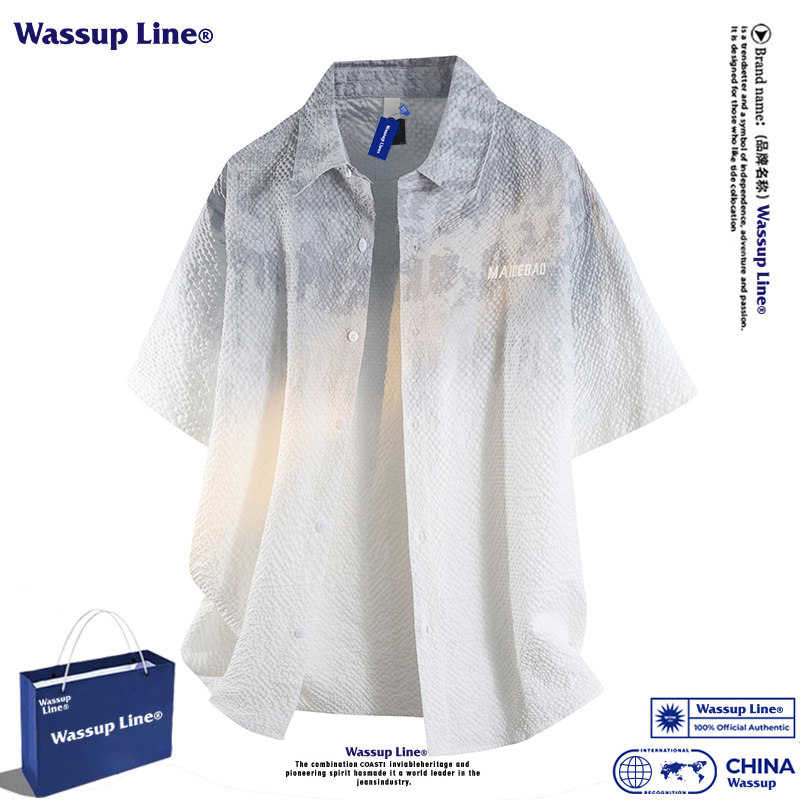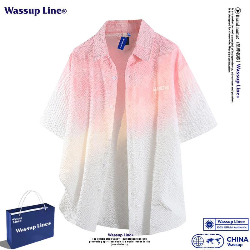 WASSUP Line潮牌夏季渐变短袖衬衣男扎染泡泡纱宽松百搭休闲衬衫