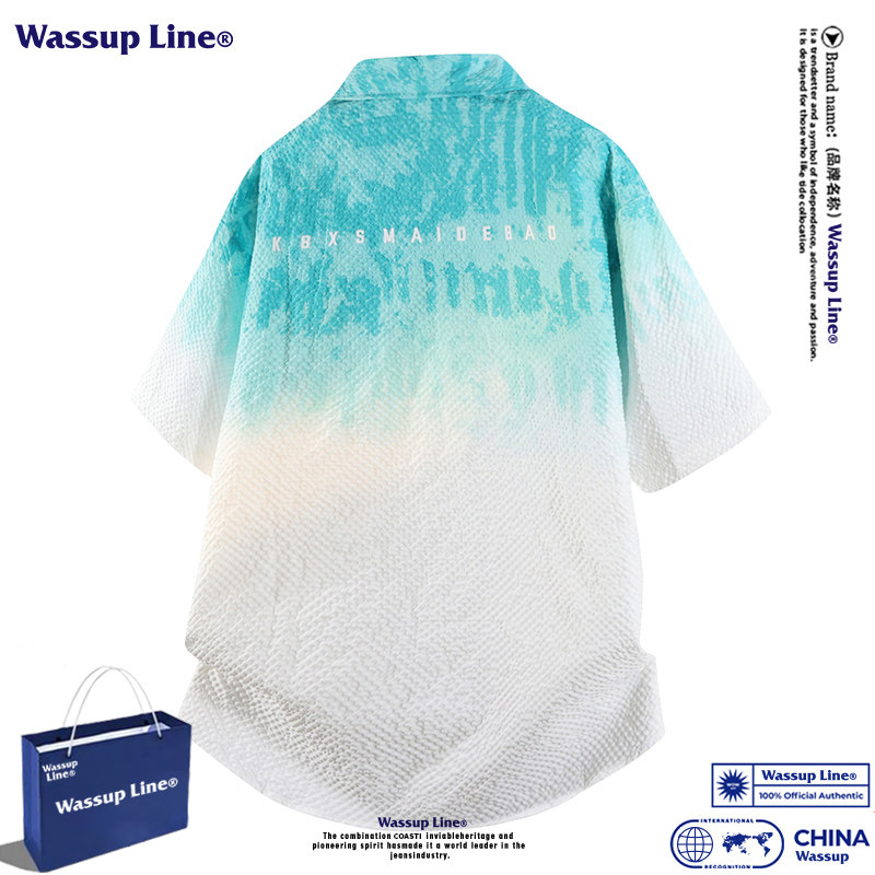 --------------------- WASSUP Line潮牌夏季渐变短袖衬衣男扎染泡泡纱宽松百搭休闲衬衫 【原售价】398元 【现售价】68.6元 【推荐理由】