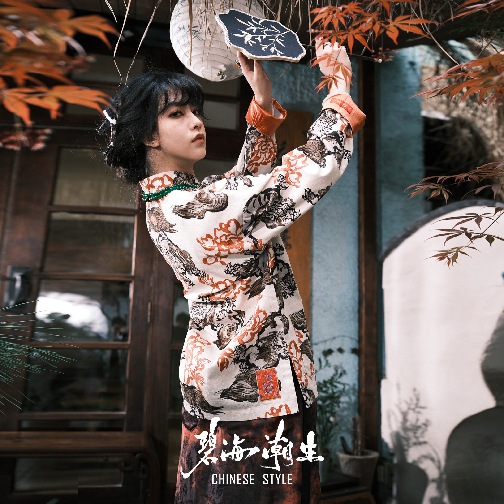 --------------------- 碧海潮生【醒狮】春夏新款中国风国潮盘扣休闲印花唐装外套男女 【原售价】1398元 【现售价】615元 【推荐理由】