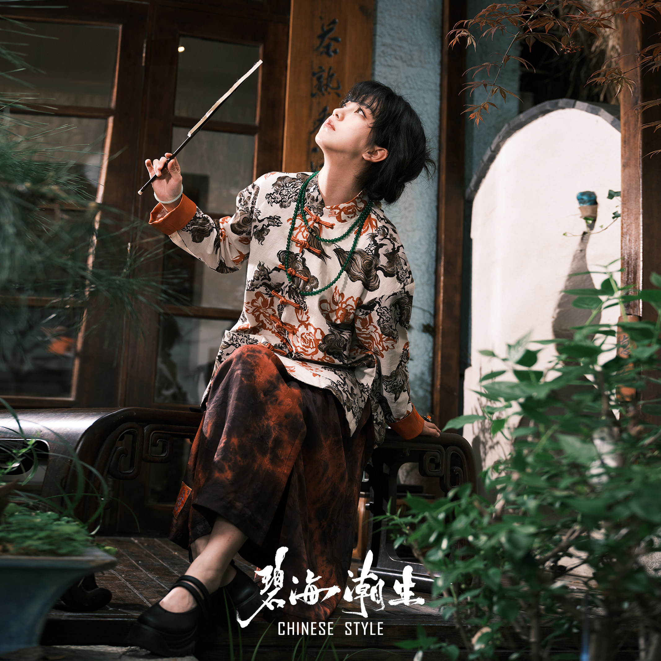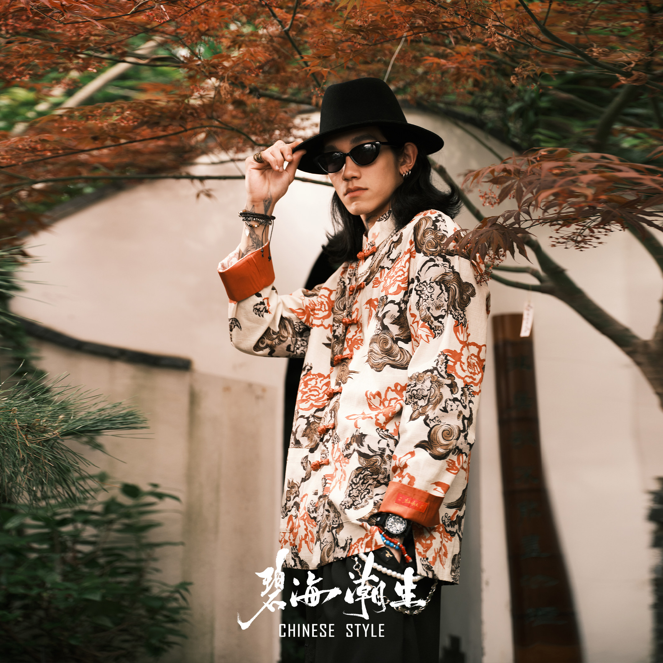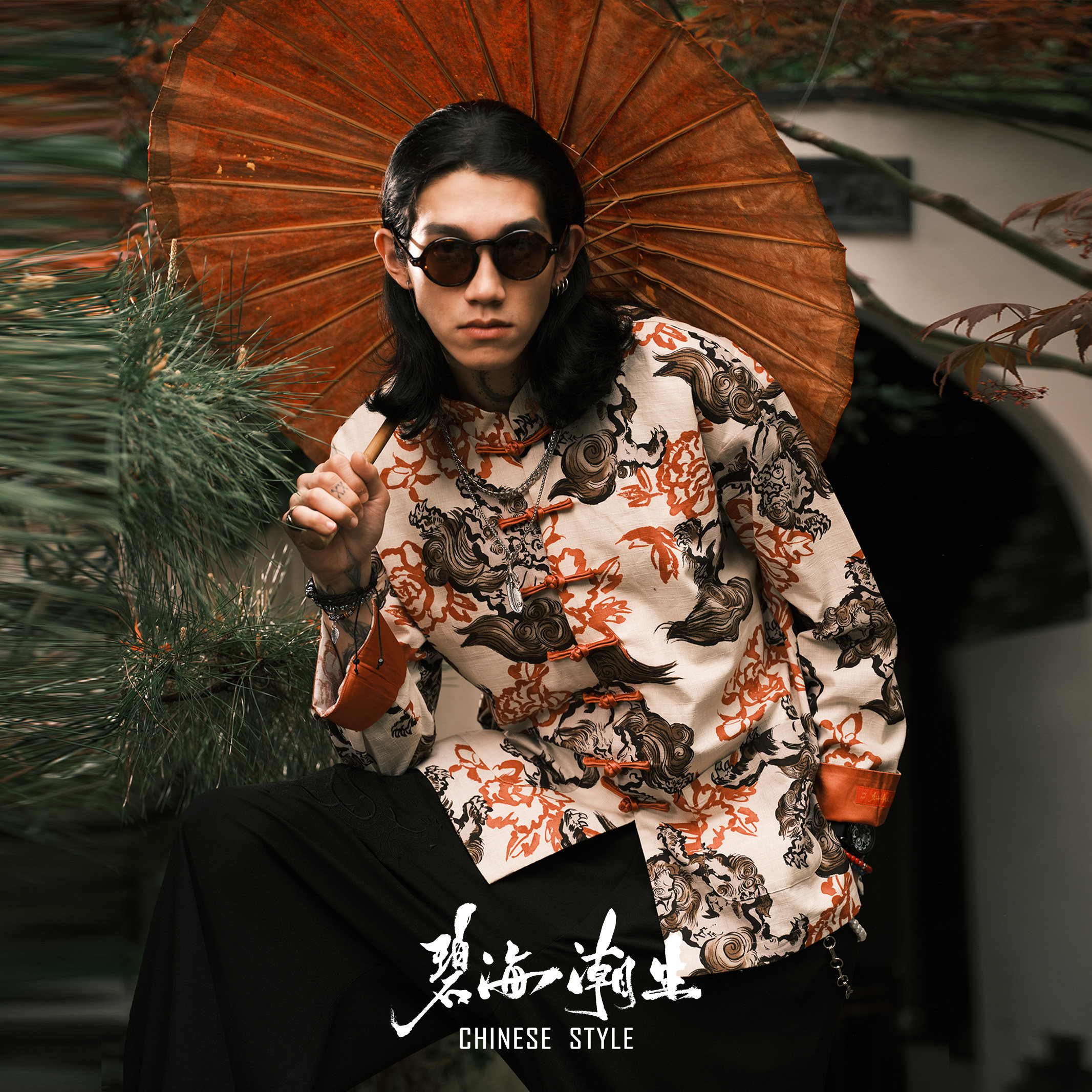 碧海潮生【醒狮】春夏新款中国风国潮盘扣休闲印花唐装外套男女