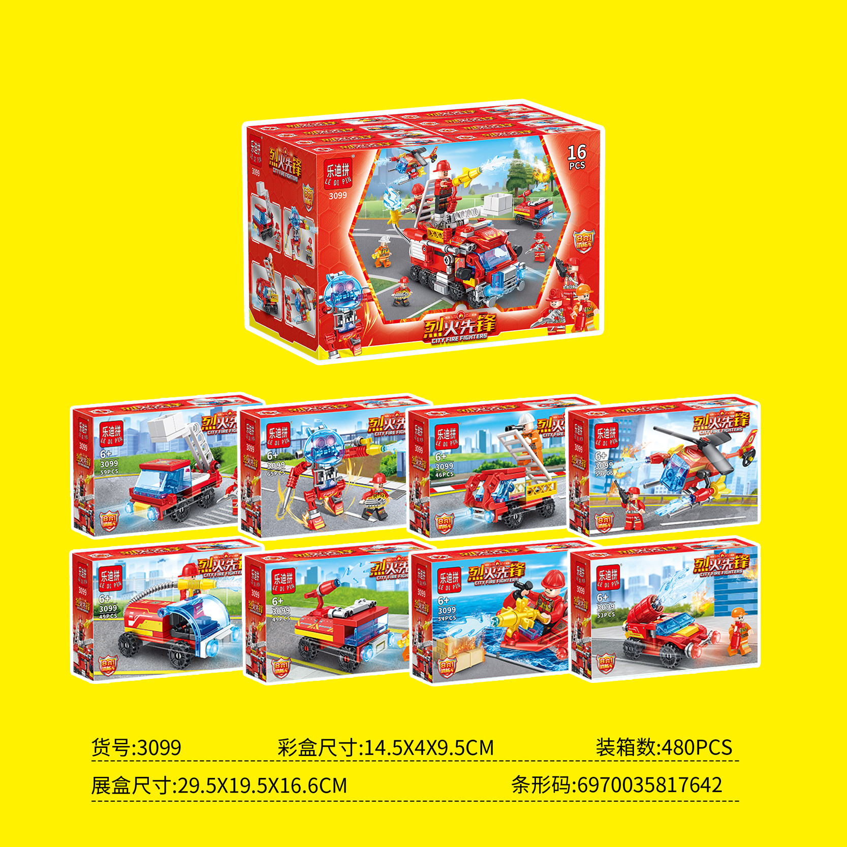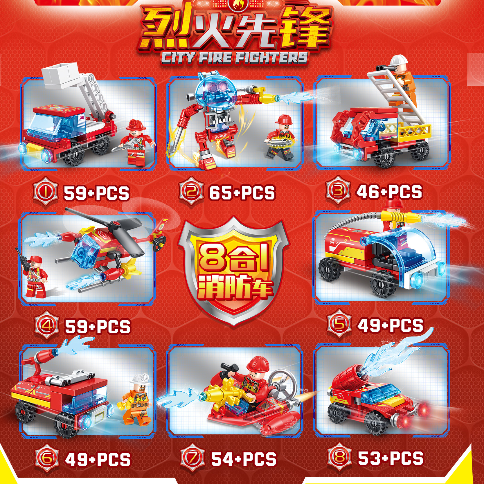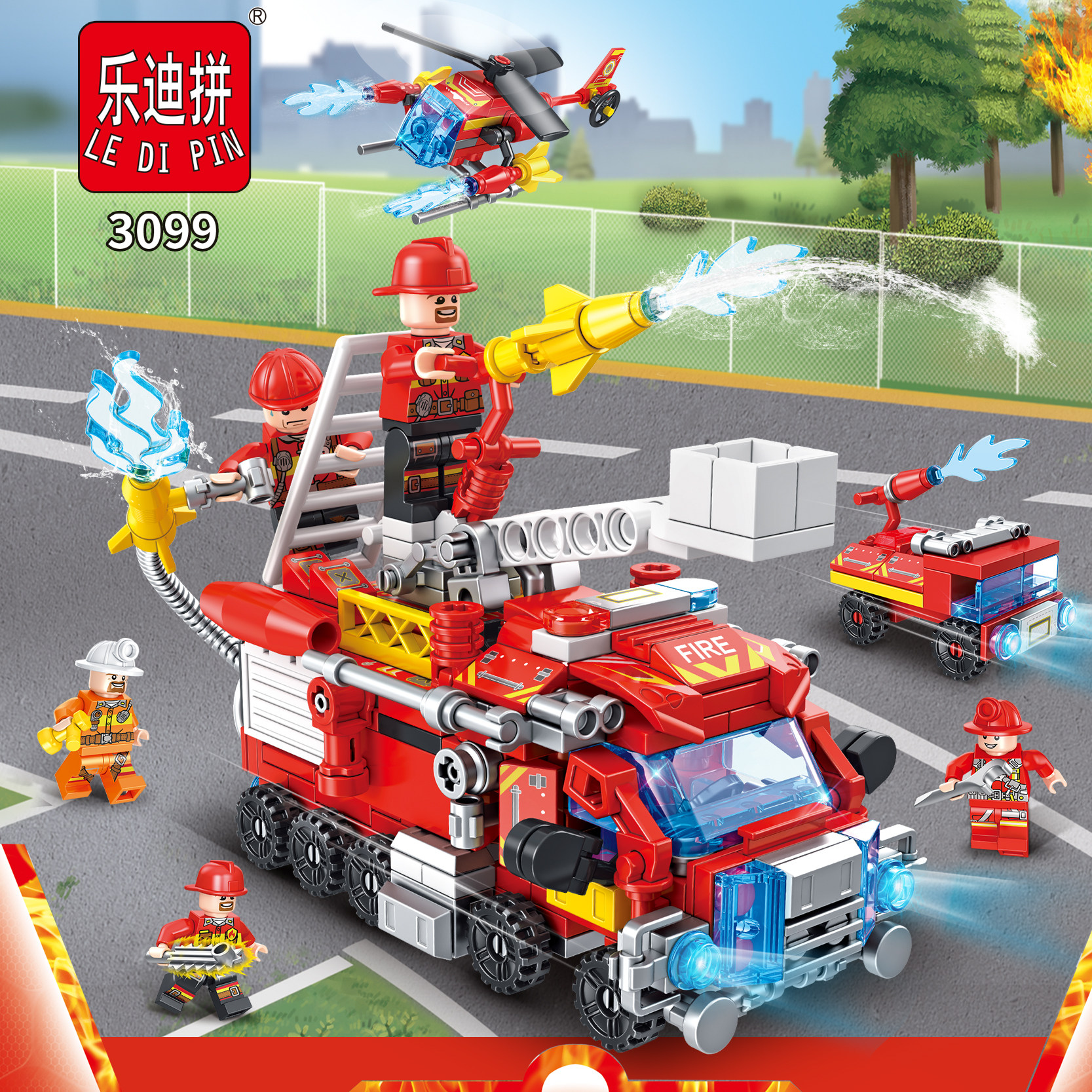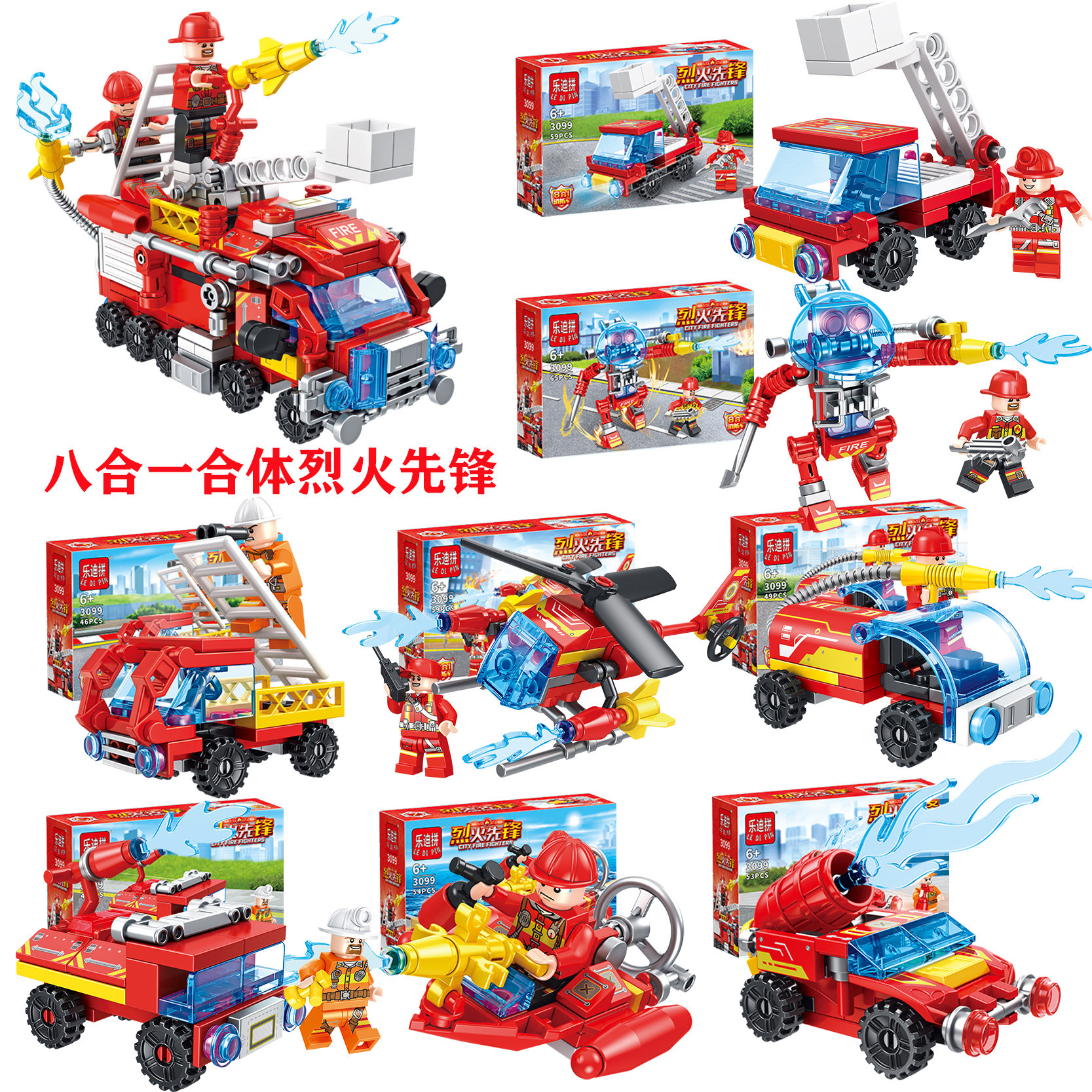 乐迪拼3099烈火先锋积木八合一消防車拼装积木儿童组装玩具男孩礼