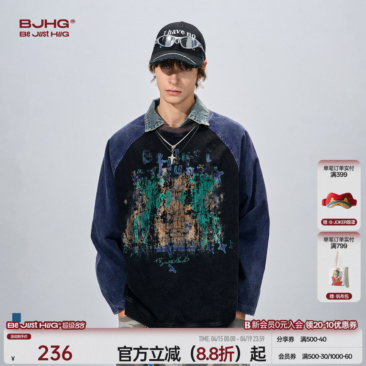 --------------------- BJHG不计后果 美式复古斑驳印花长袖T恤男款早春撞色插肩袖卫衣女 【原售价】269元 【现售价】236元 【推荐理由】