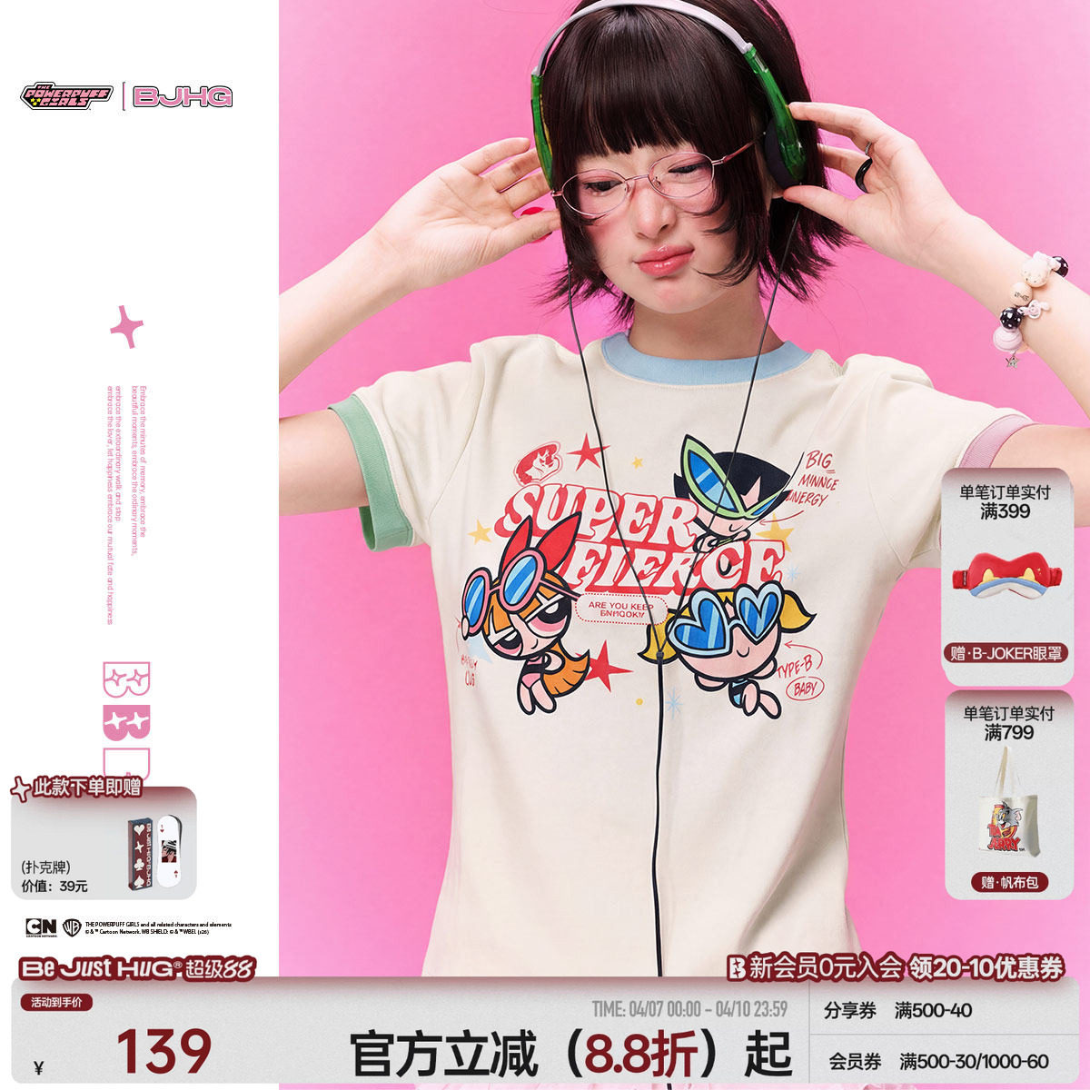 --------------------- 【飞天小女警联名】BJHG不计后果撞色短袖t恤女款夏季上衣正肩T恤 --------------------- --------------------- 【原价】159元 【券后价】129元