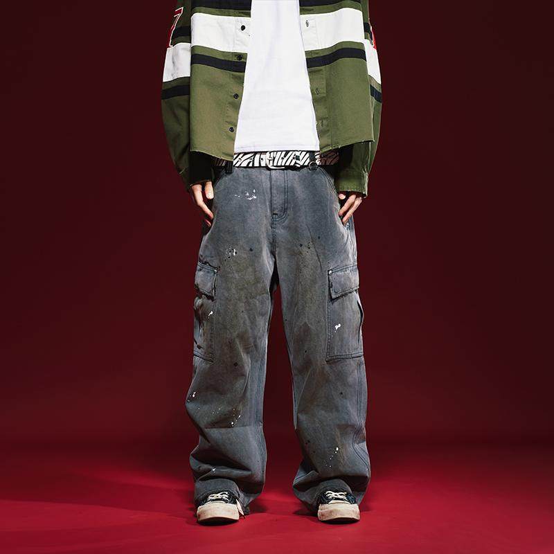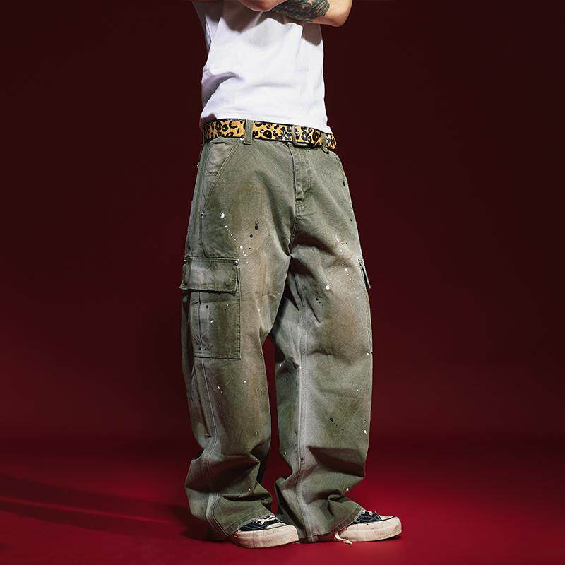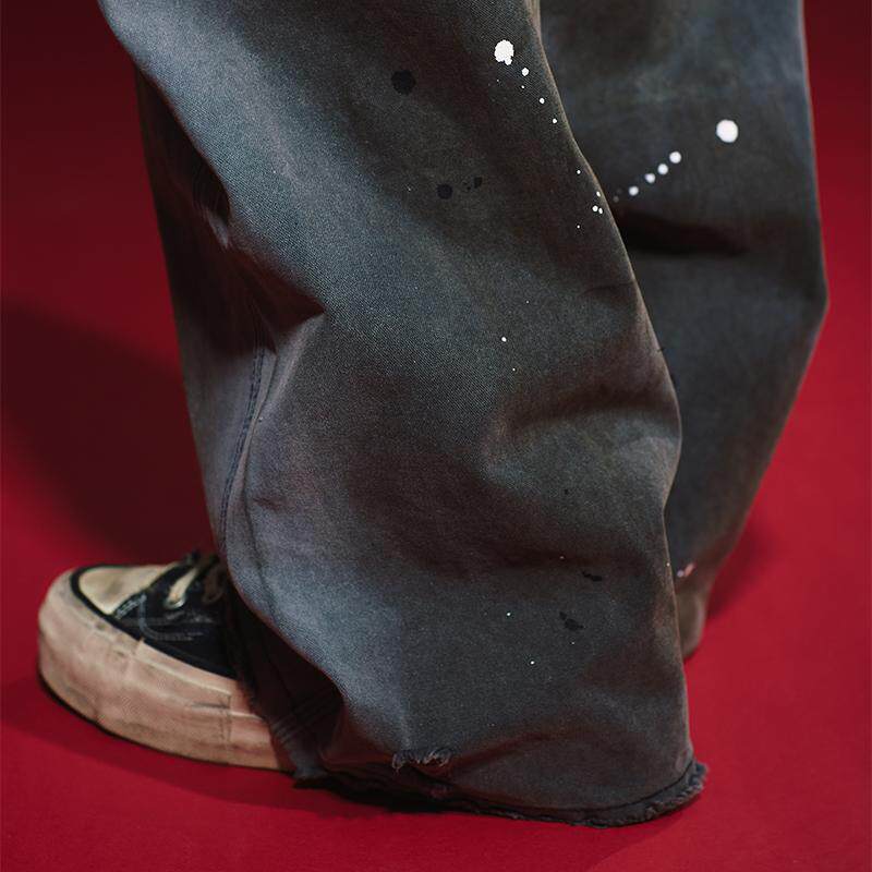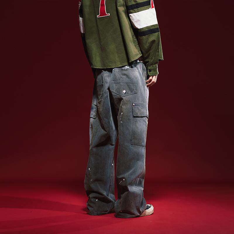 Remedy美式复古潮牌水洗泼墨休闲裤秋冬新款宽松直筒国潮工装裤男