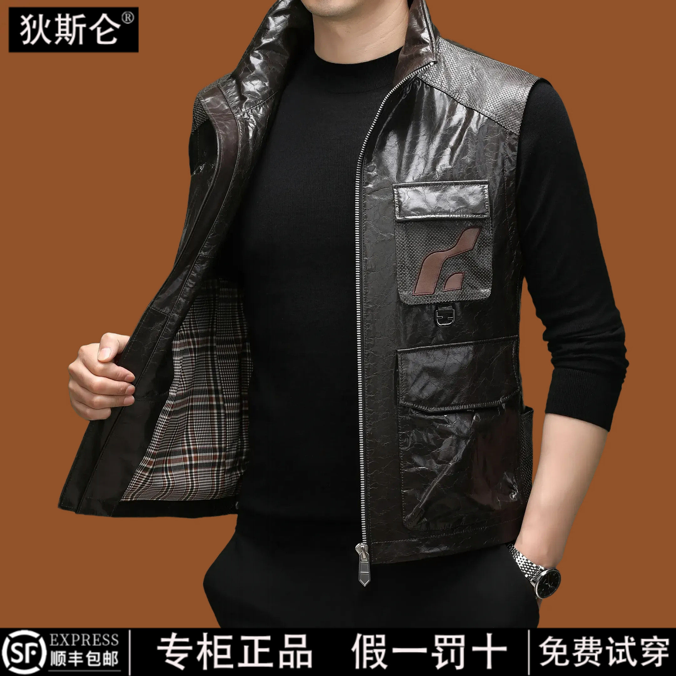 --------------------- 狄斯仑真皮马甲男立领头层牛皮商务休闲拉链背心时尚潮流百搭外套 【原售价】2680元 【现售价】1223元 【推荐理由】