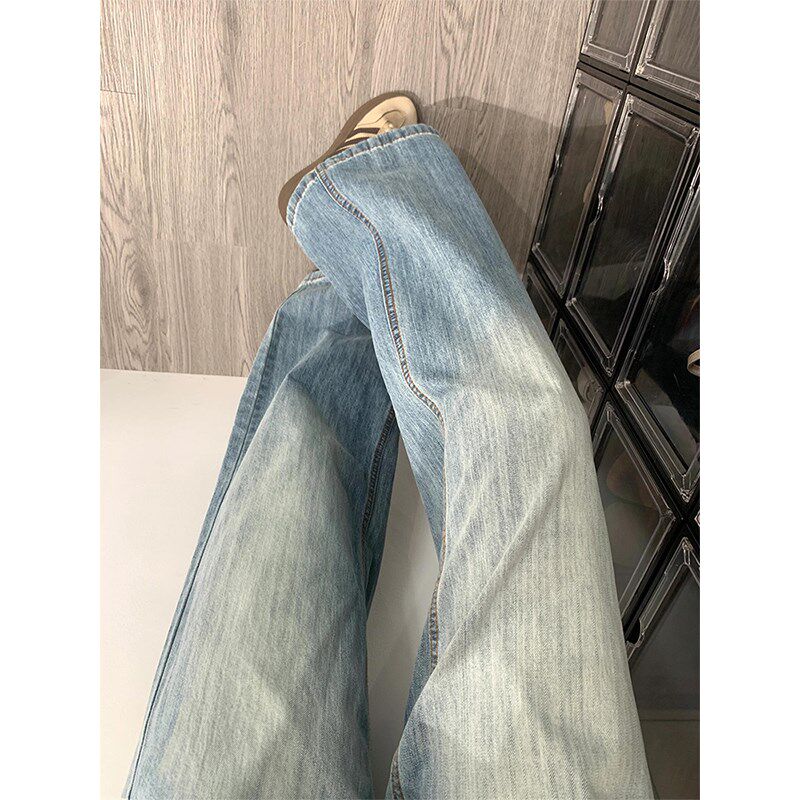 设计感美式复古直筒牛仔裤女秋季新款胖妹妹mm高腰宽松显瘦阔腿裤