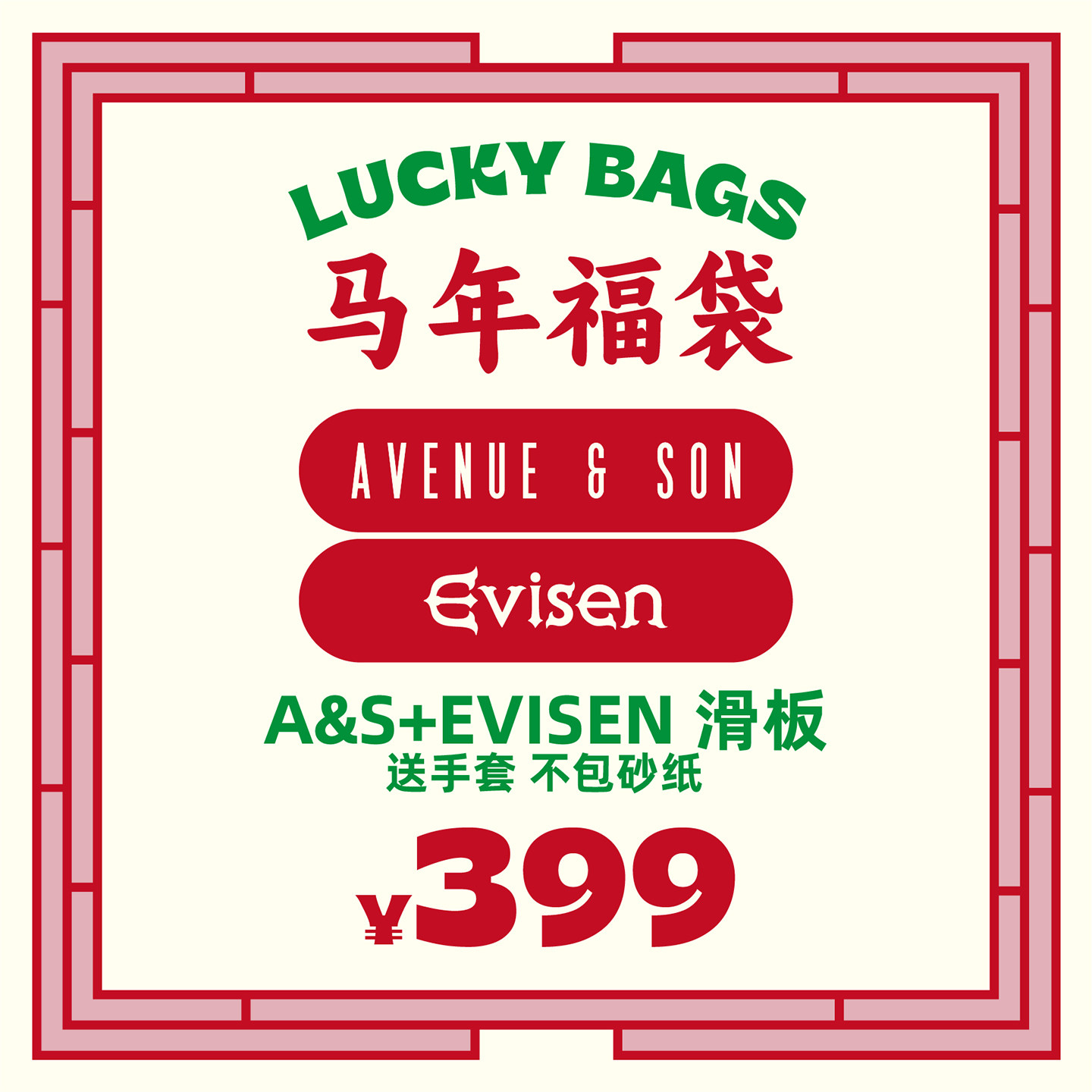--------------------- AVENUE&SON大道之子2026马年早春A&S+EVISEN超值滑板福袋 【原售价】470元 【现售价】413元 【推荐理由】