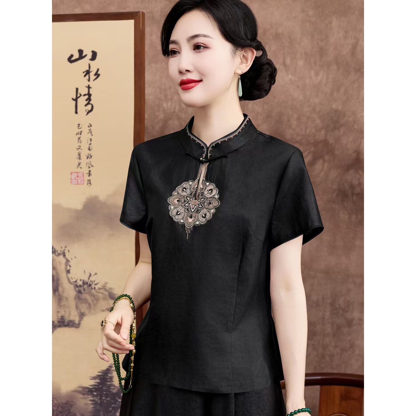 淘宝正宗香云纱真丝上衣新中式国风新款女装2026年新款轻奢高级感小衫