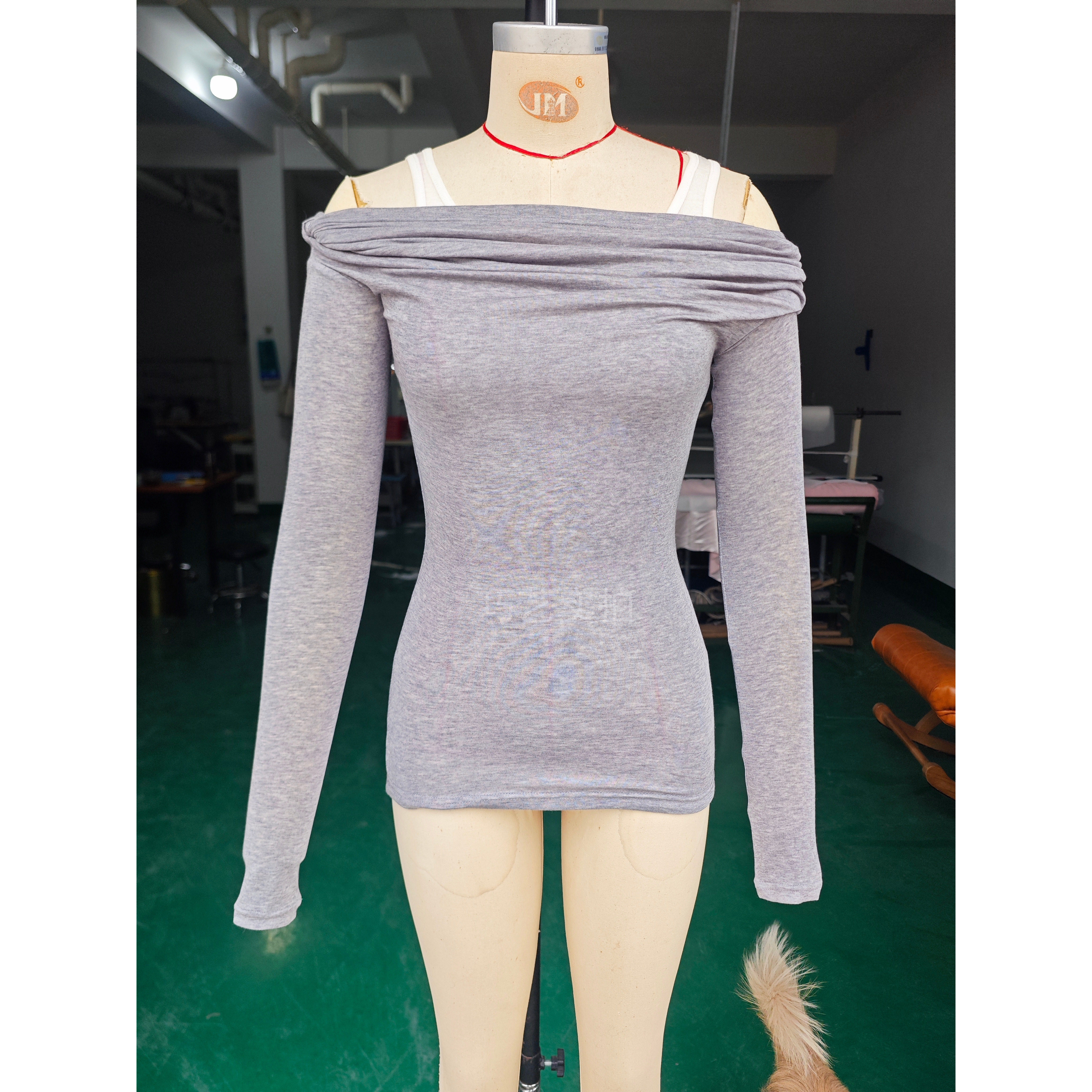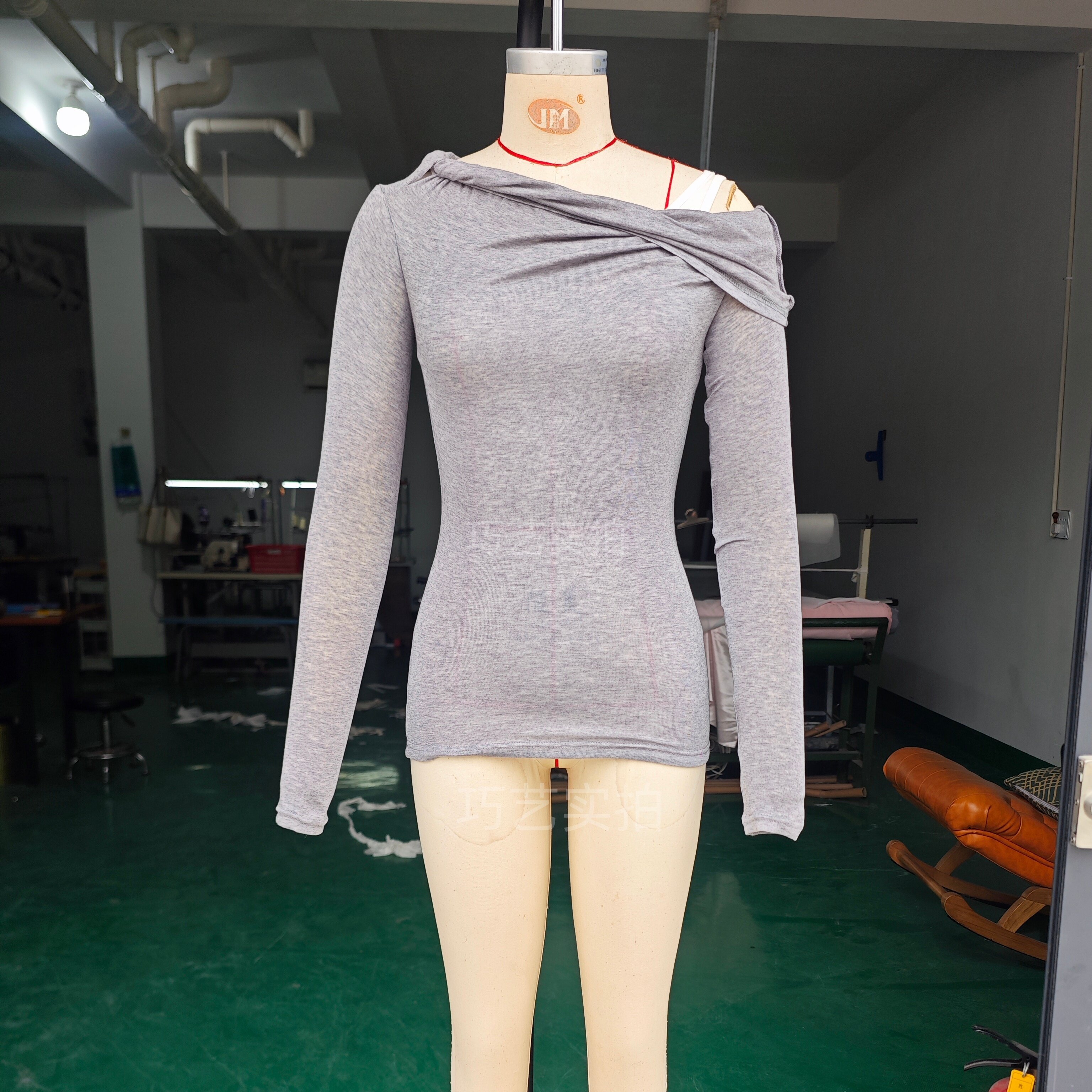 巧艺定制2026春夏季新款不规则扭结褶皱一字领多穿法假两件针织衫