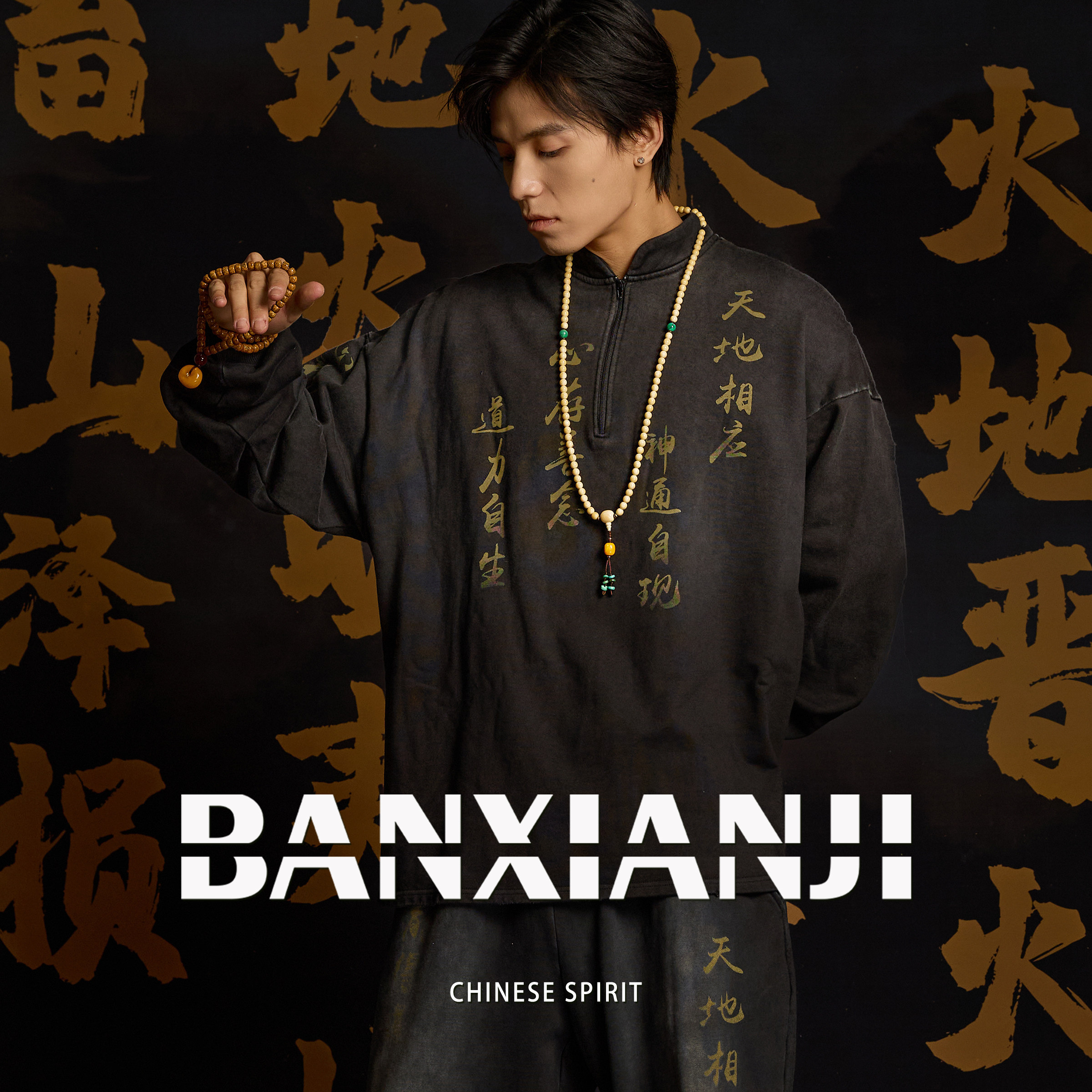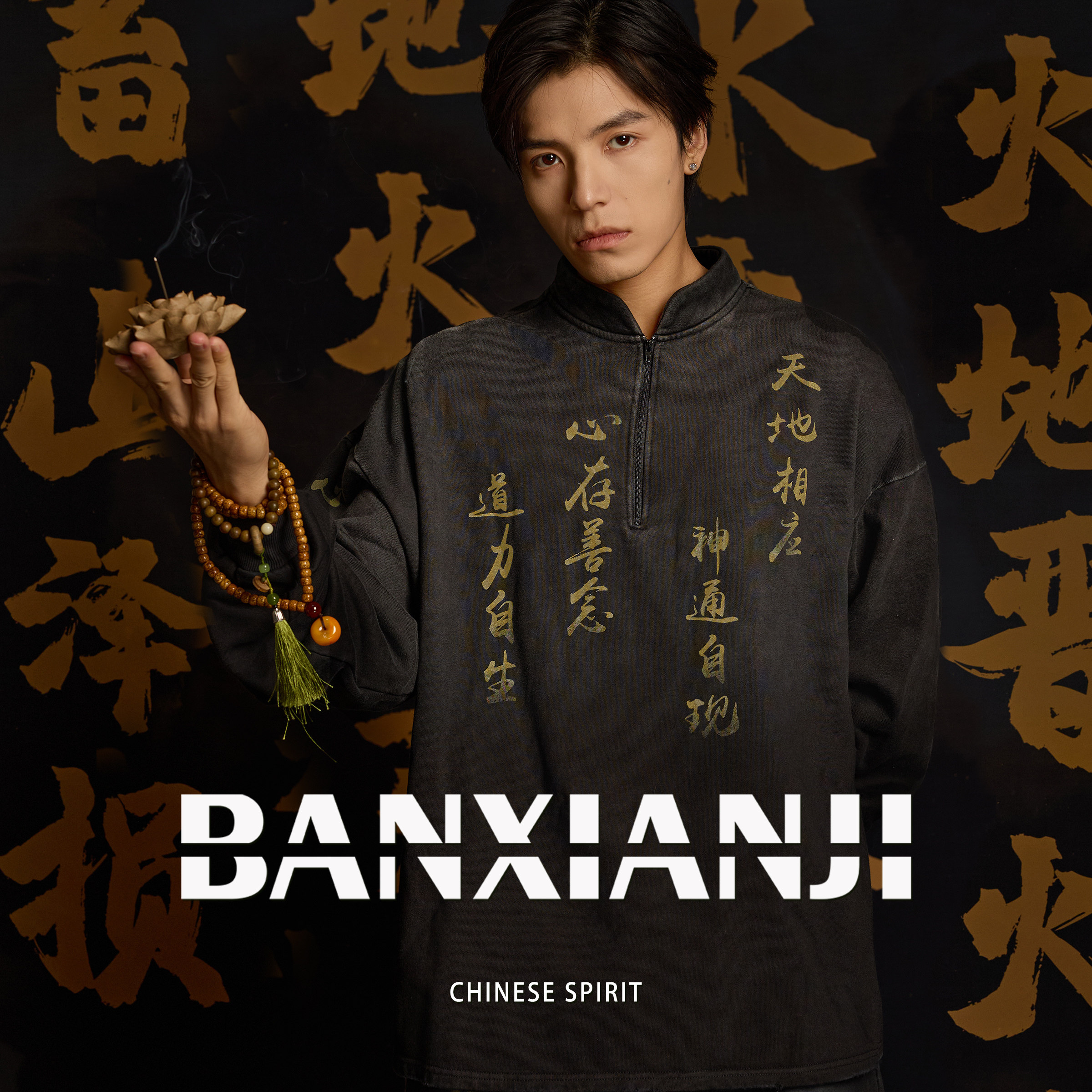 半闲集<道可道>国潮半拉链卫衣复古中式男装春秋圆领休闲上衣