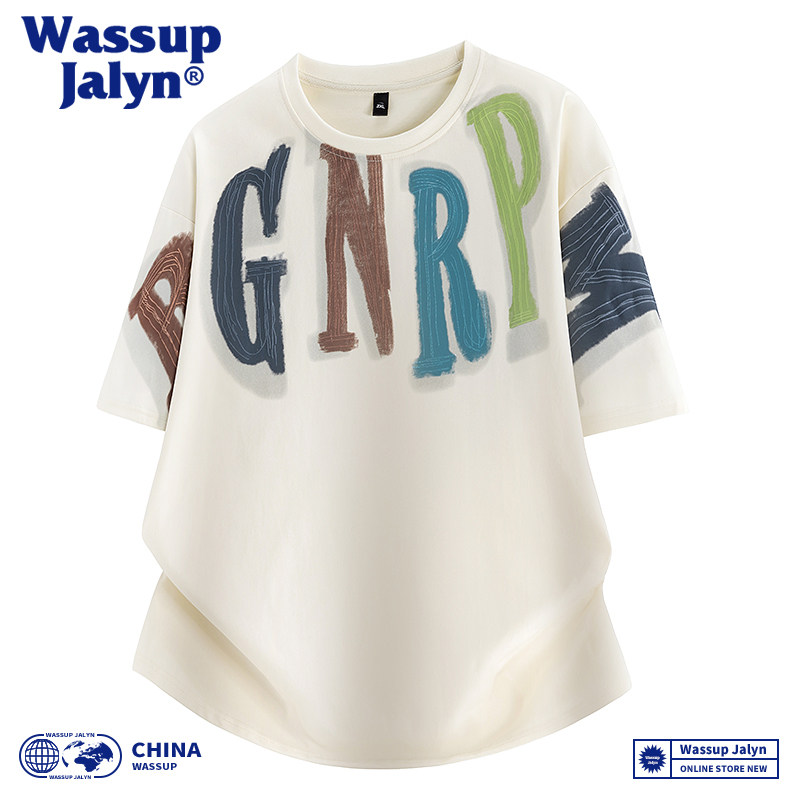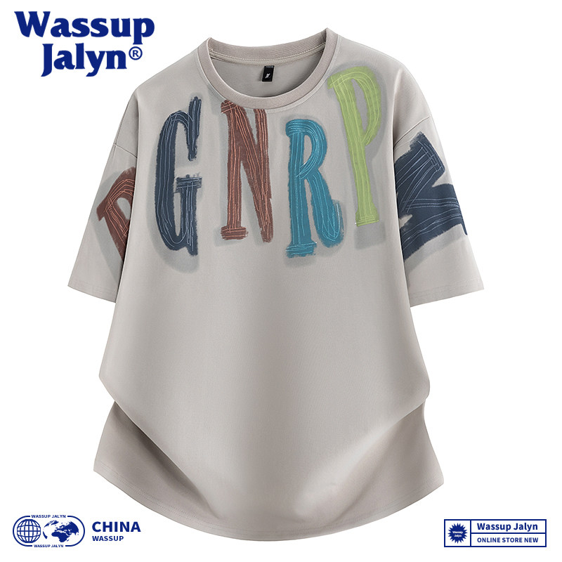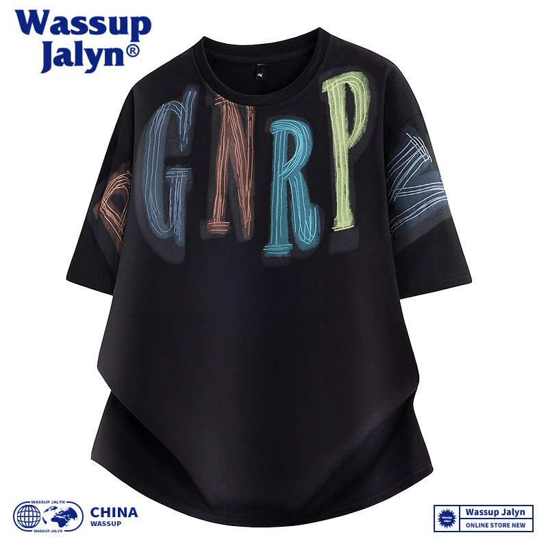 WASSUP JALYN短袖t恤男夏季美式潮牌涂鸦字母刺绣冰丝凉感情侣T恤