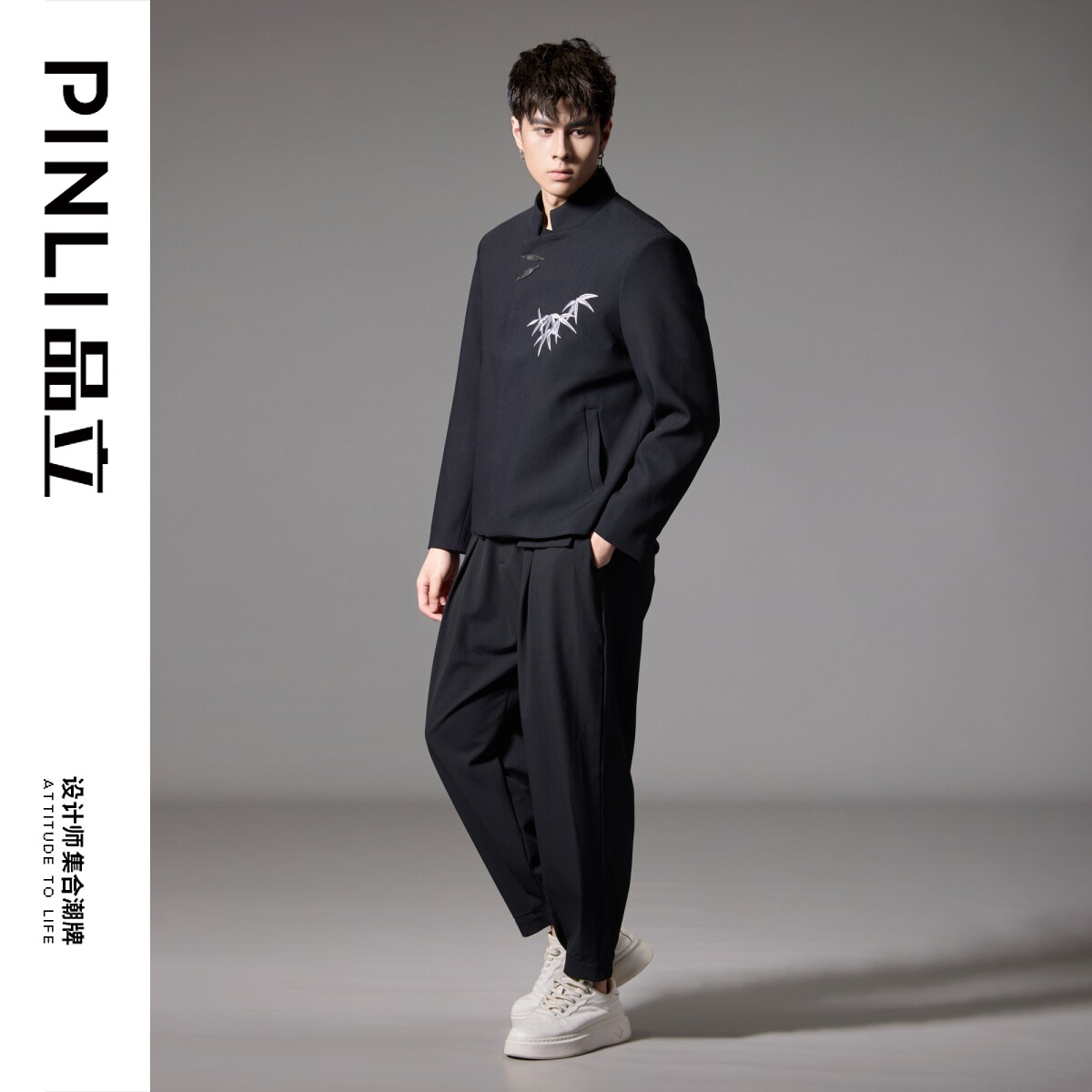 淘宝PINLI品立秋季新款新中式立领夹克外套男士刺绣国潮休闲西服