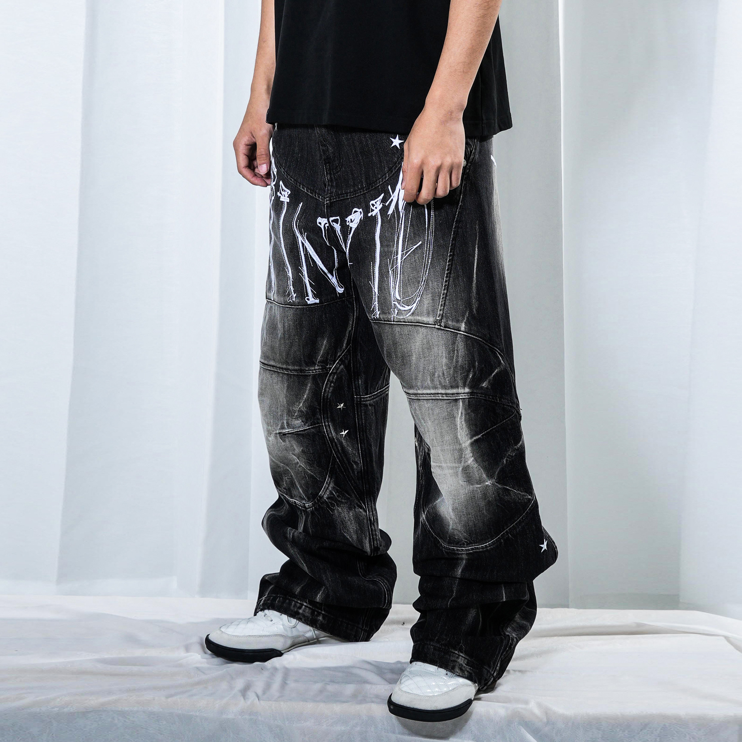 淘宝vinkid(云梯)星斗士牛仔裤 美式潮流小众设计国潮高街百搭长裤