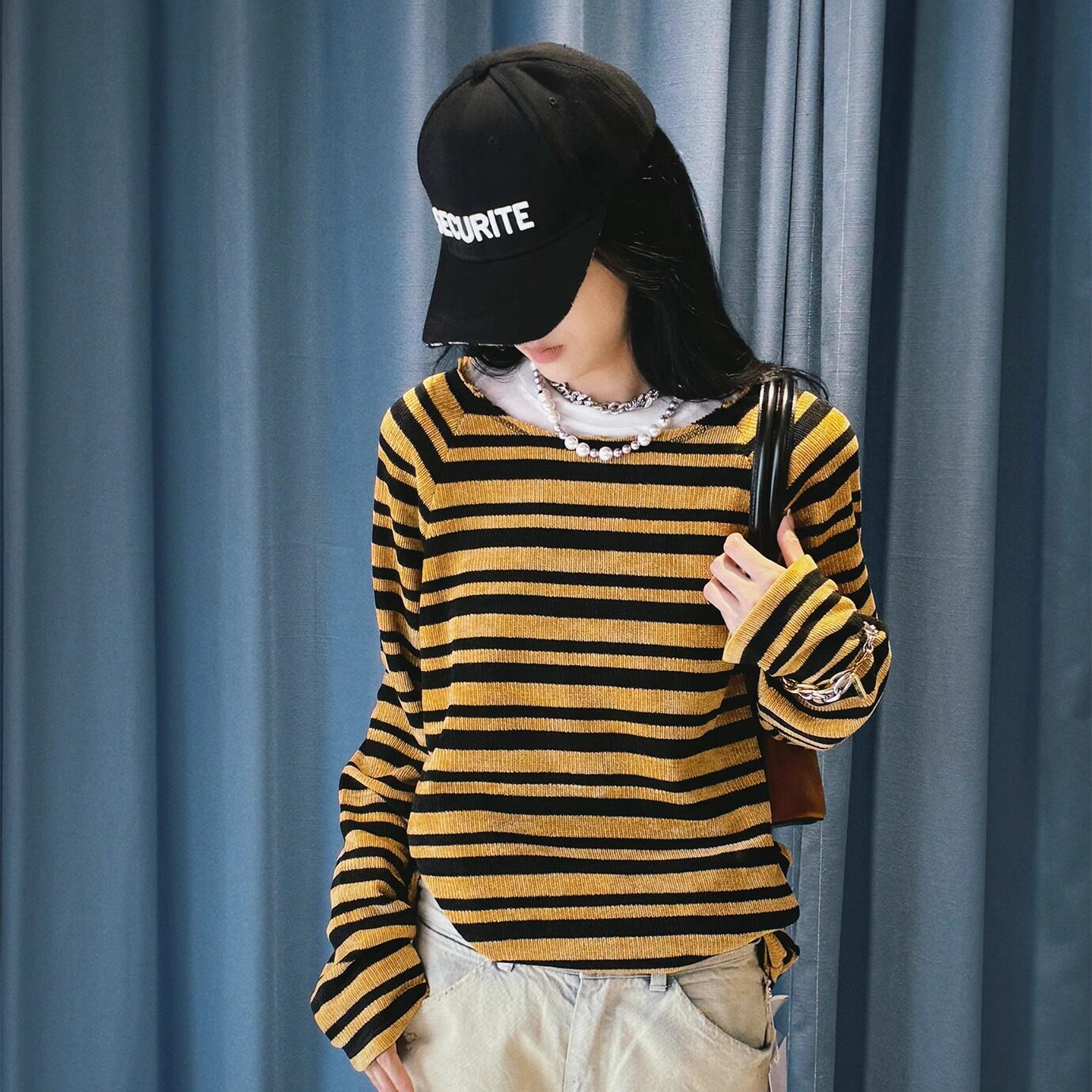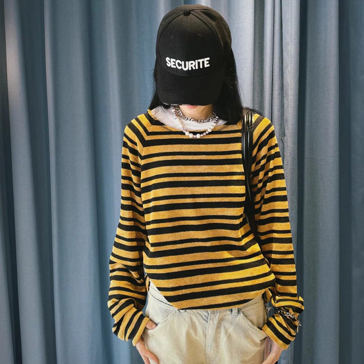 --------------------- 清货折5折 LOST GENERAL 黄黑条纹长袖T恤洞装饰浅灰色牛仔裤 【原售价】600元 【现售价】236.5元 【推荐理由】