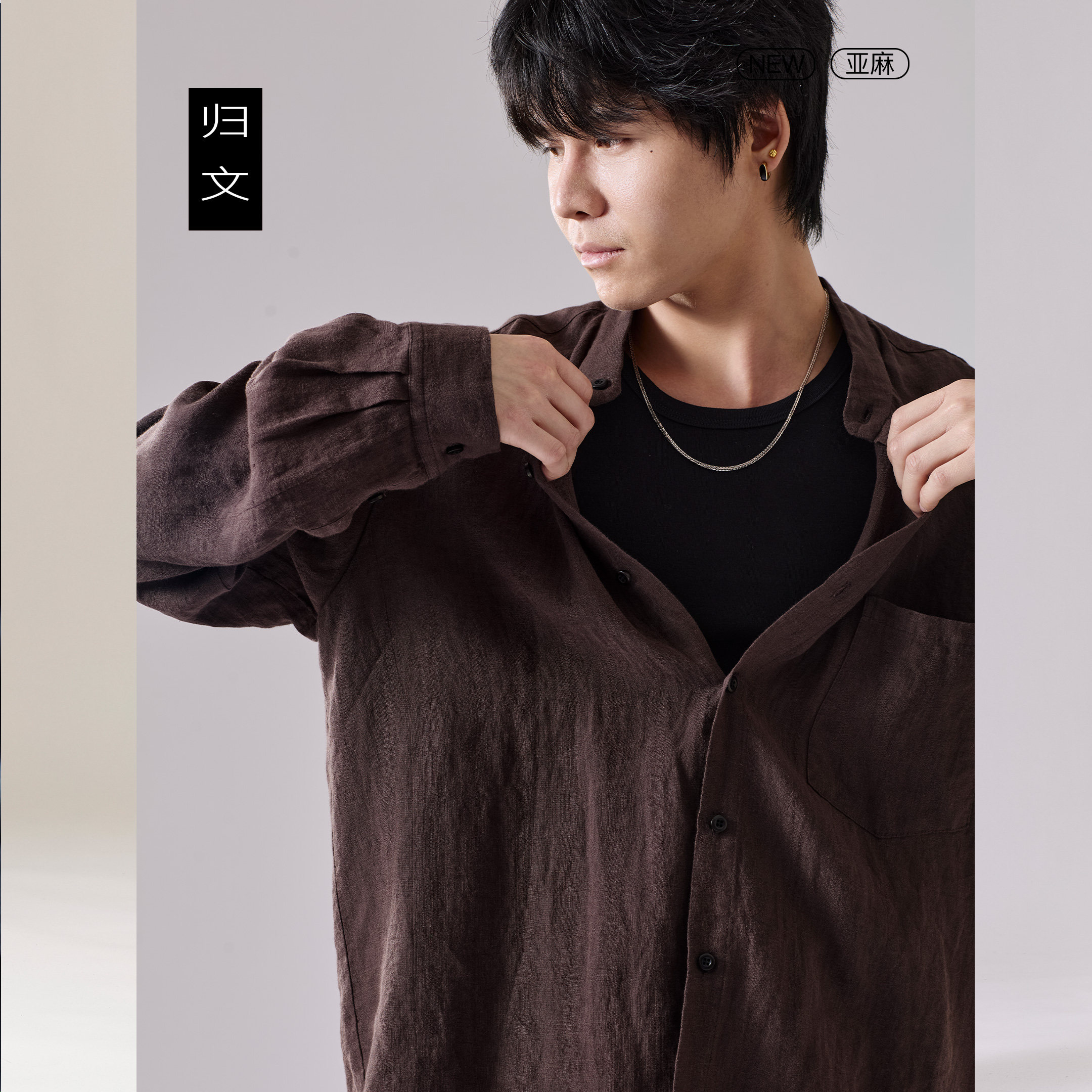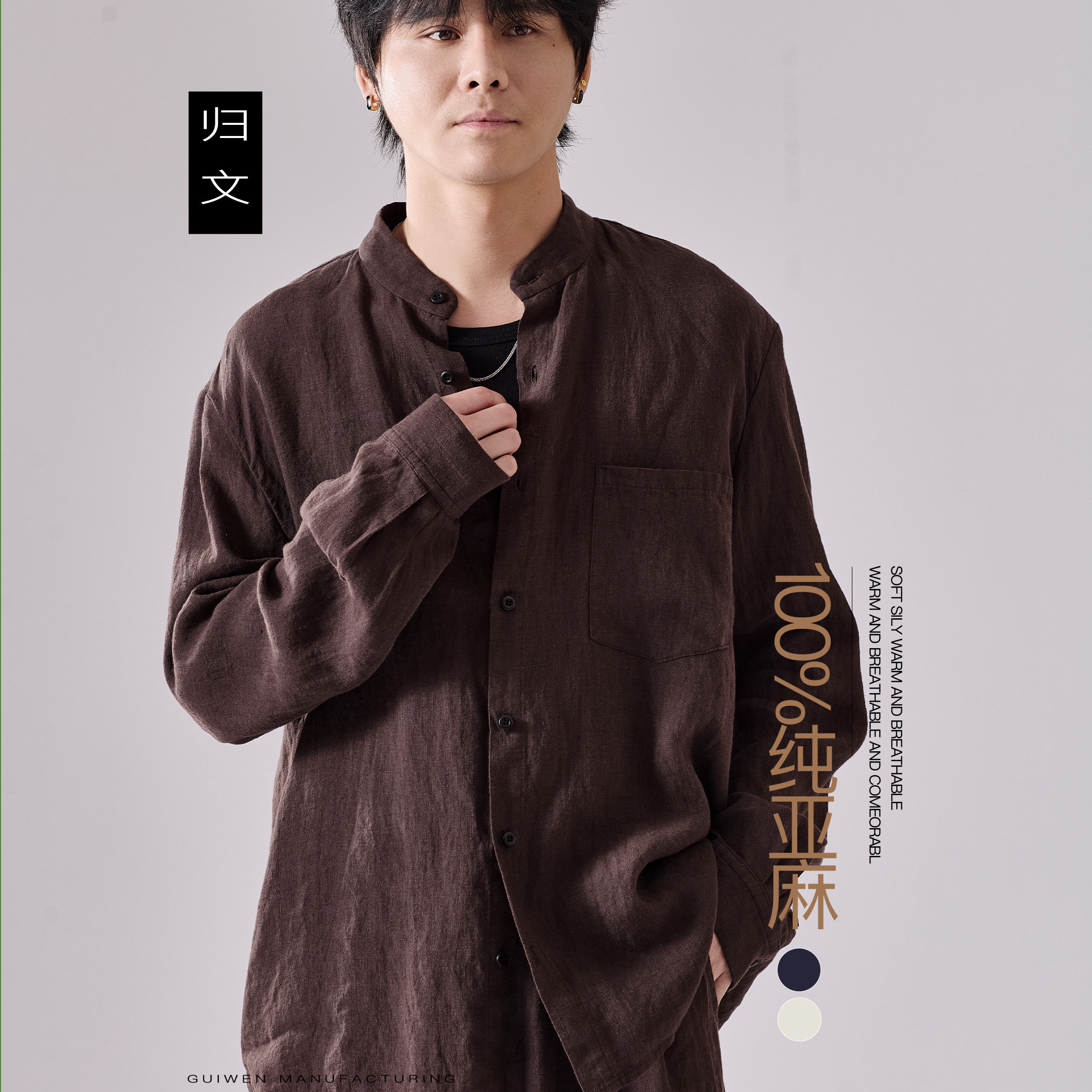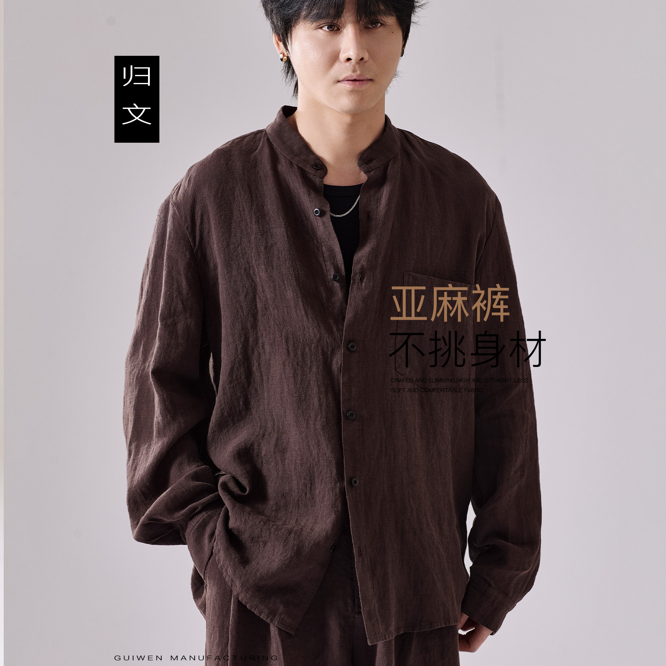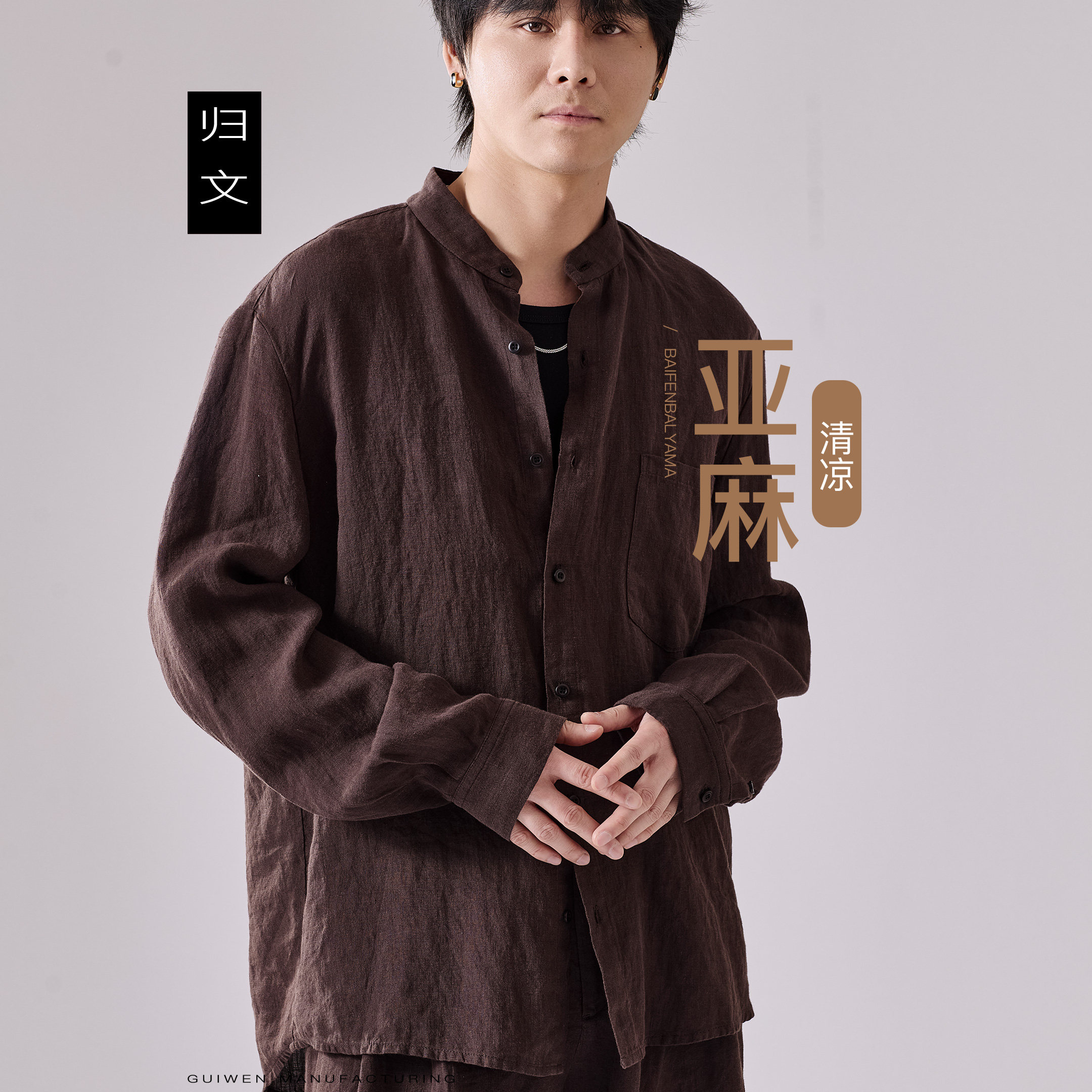 --------------------- 归文100%纯亚麻立领衬衫男长袖休闲薄款透气衬衣简约棕咖色防晒衣 【原售价】398元 【现售价】358元 【推荐理由】