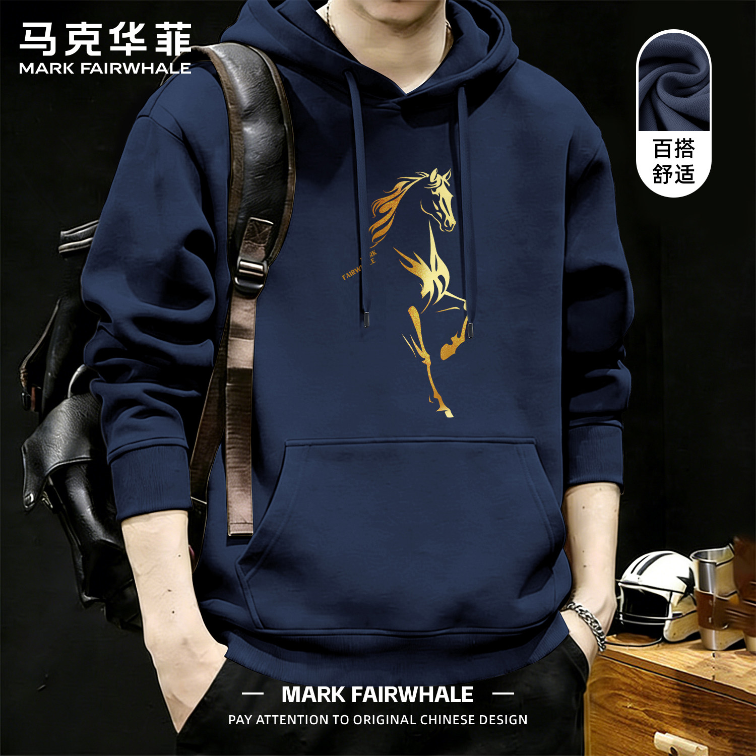 马克华菲马年限定国潮风马印花连帽卫衣男款宽松休闲套头上衣潮流